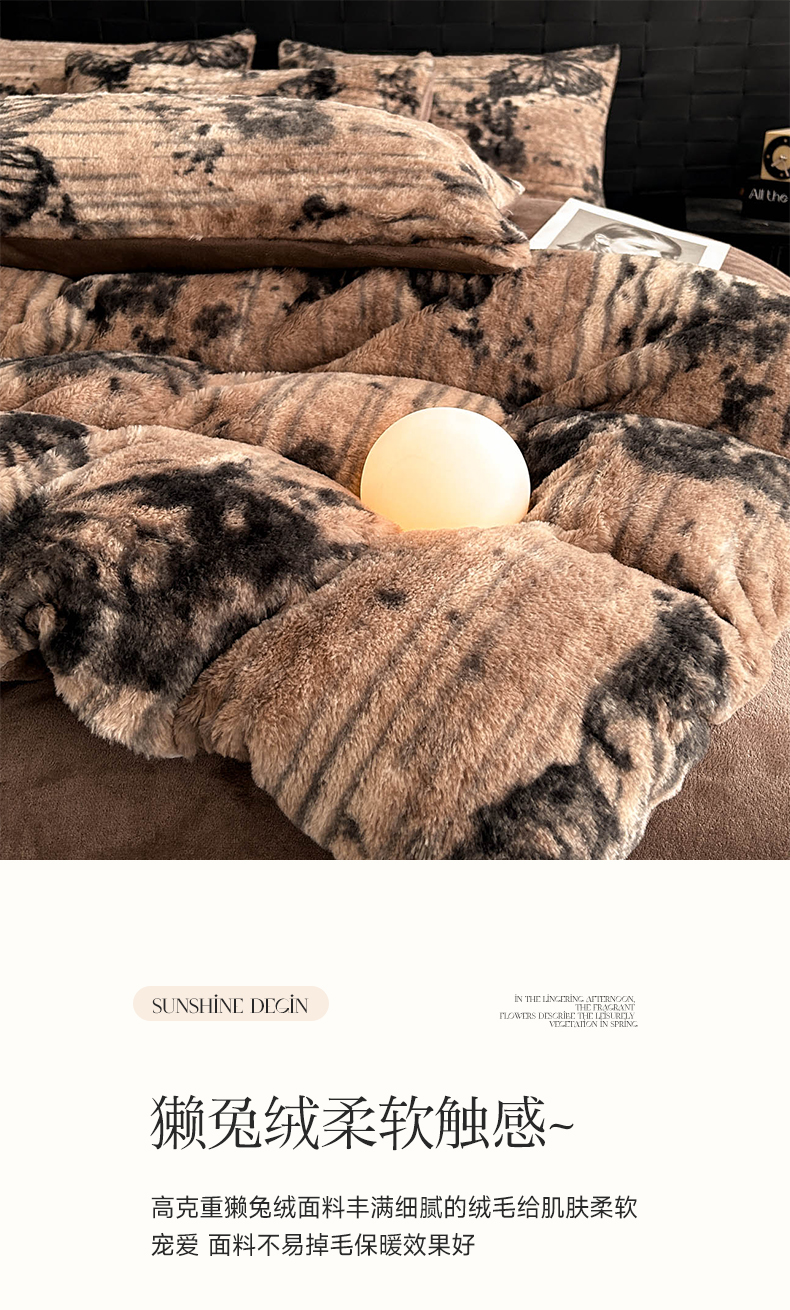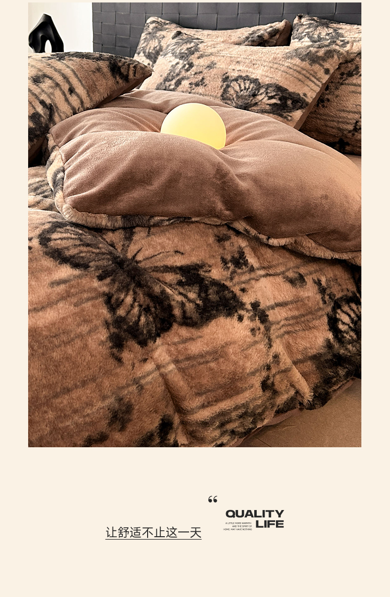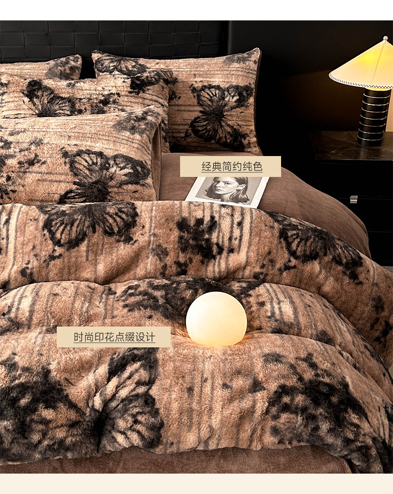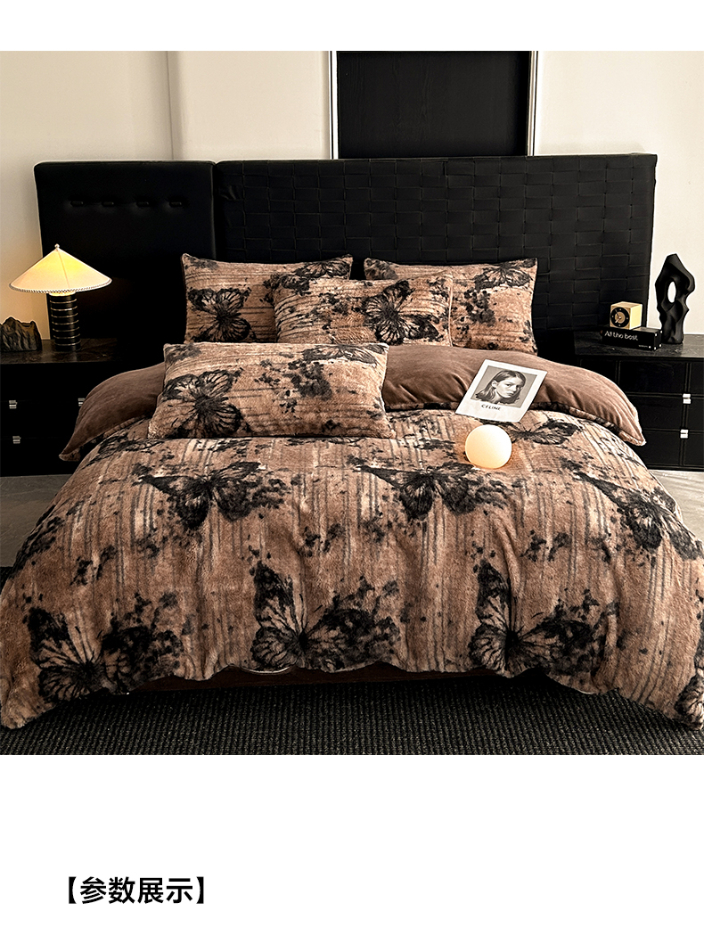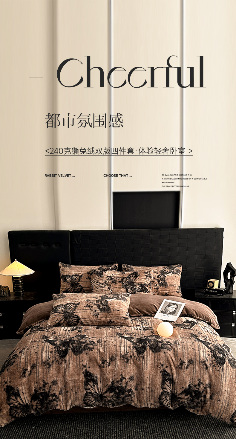 当前位置: 91家纺网 > 商品网购 > 床品套件 > 四件套 > 兔毛绒四件套 > 蓝极人 2025新款美拉德系兔绒兔毛绒兔兔绒印花四件套 黑影蝶梦
