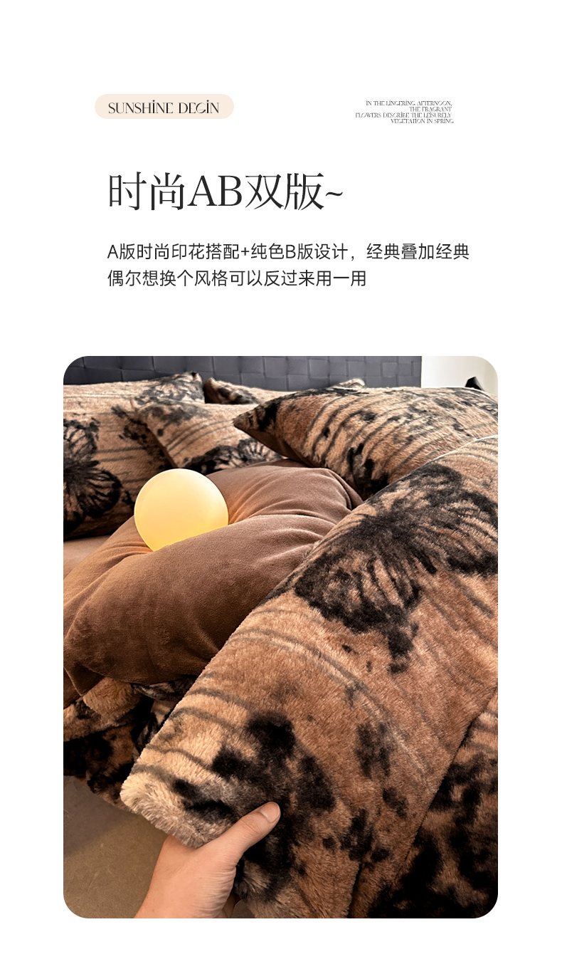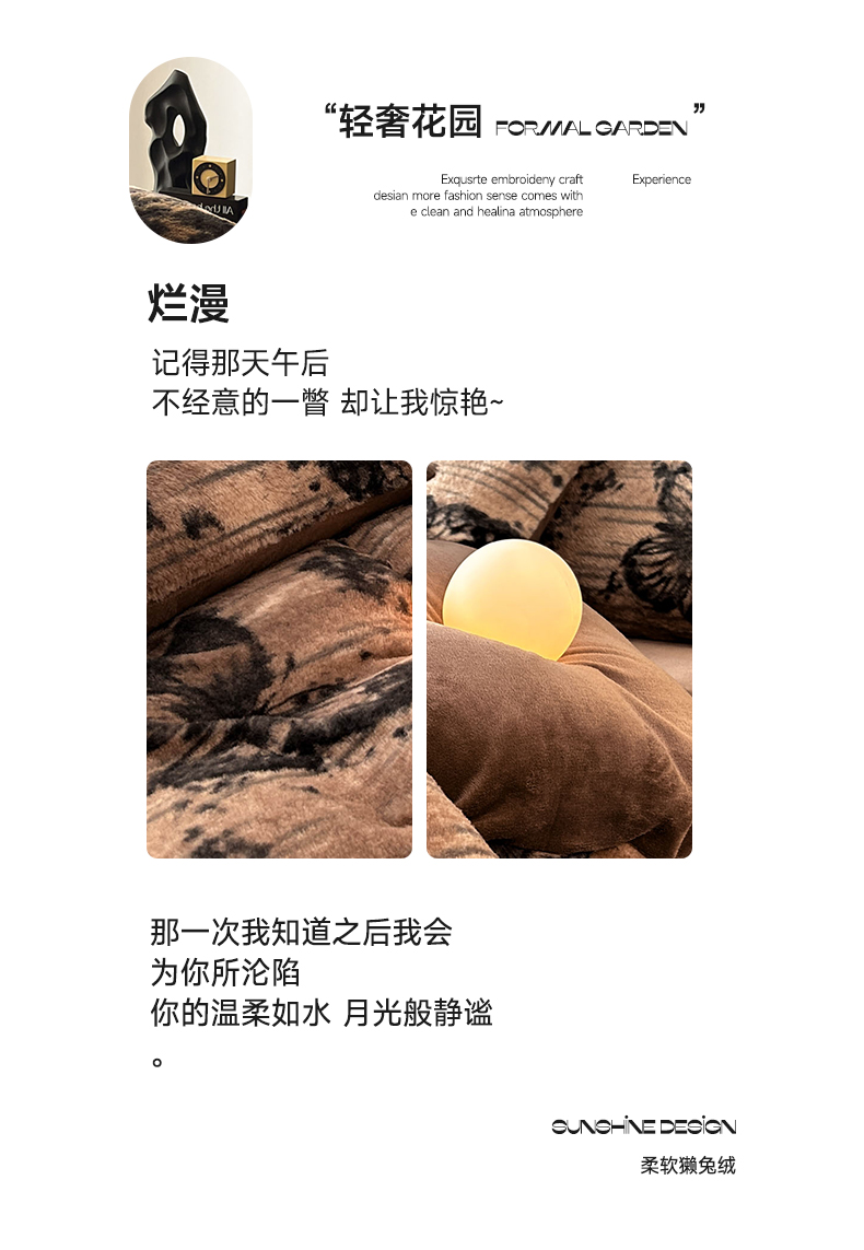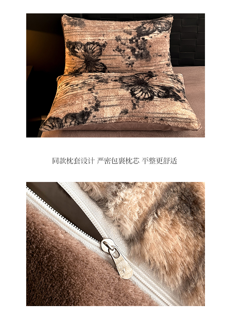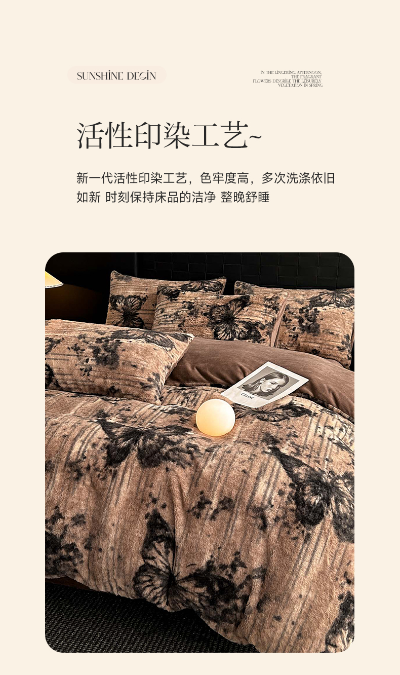 当前位置: 91家纺网 > 商品网购 > 床品套件 > 四件套 > 兔毛绒四件套 > 蓝极人 2025新款美拉德系兔绒兔毛绒兔兔绒印花四件套 黑影蝶梦