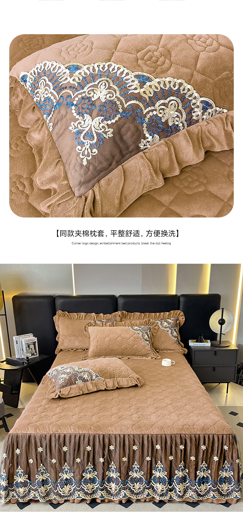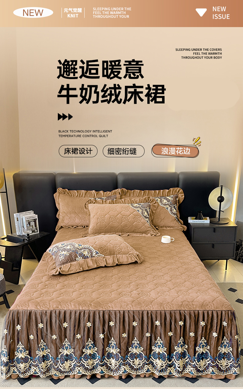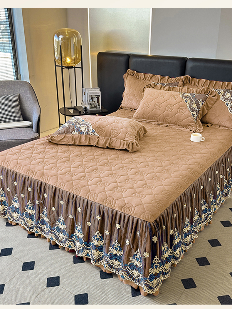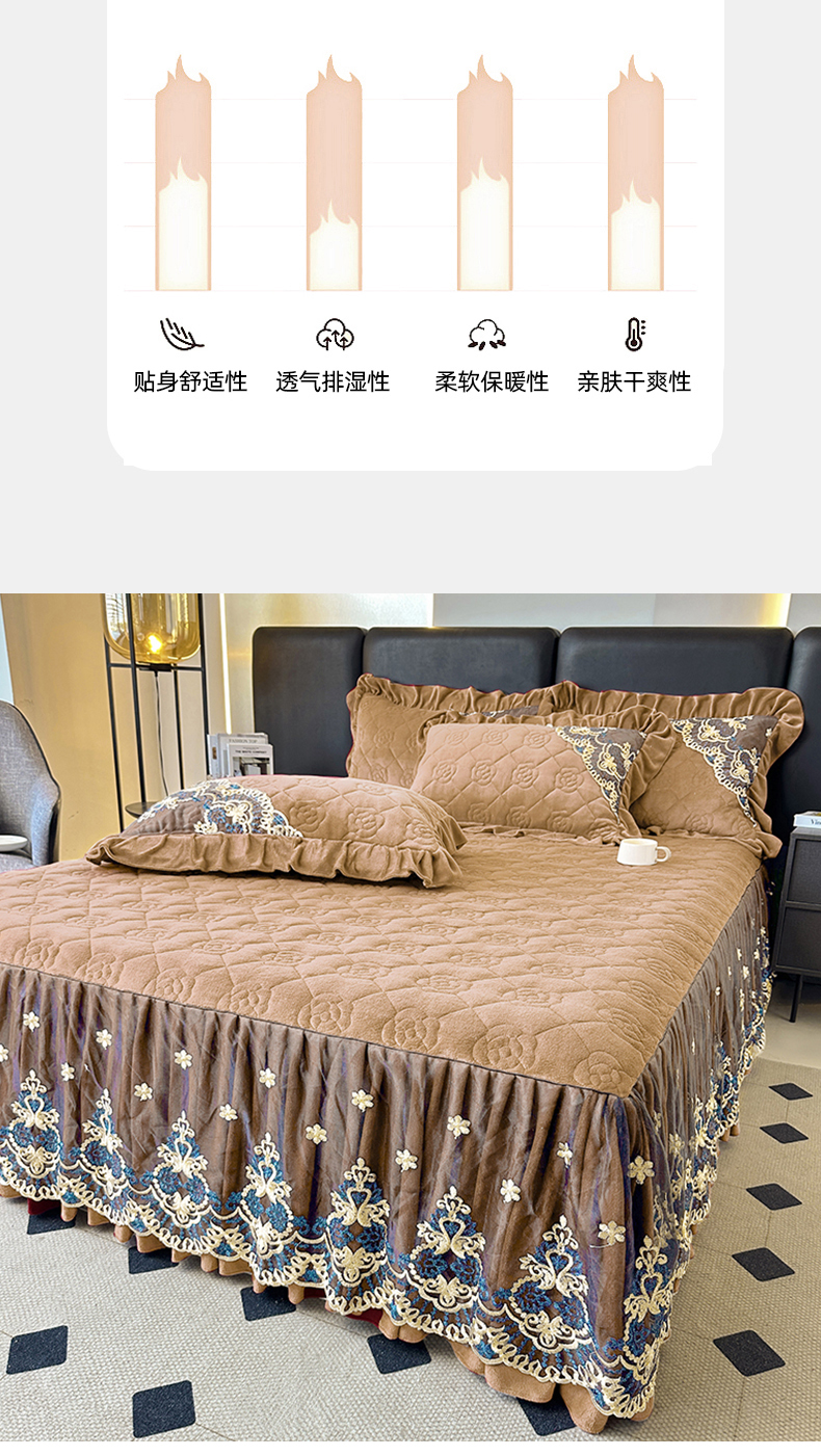 罗艺轩 2025新款牛奶绒浪漫花边床裙款三件套-暖洋洋 暖洋洋-奶咖