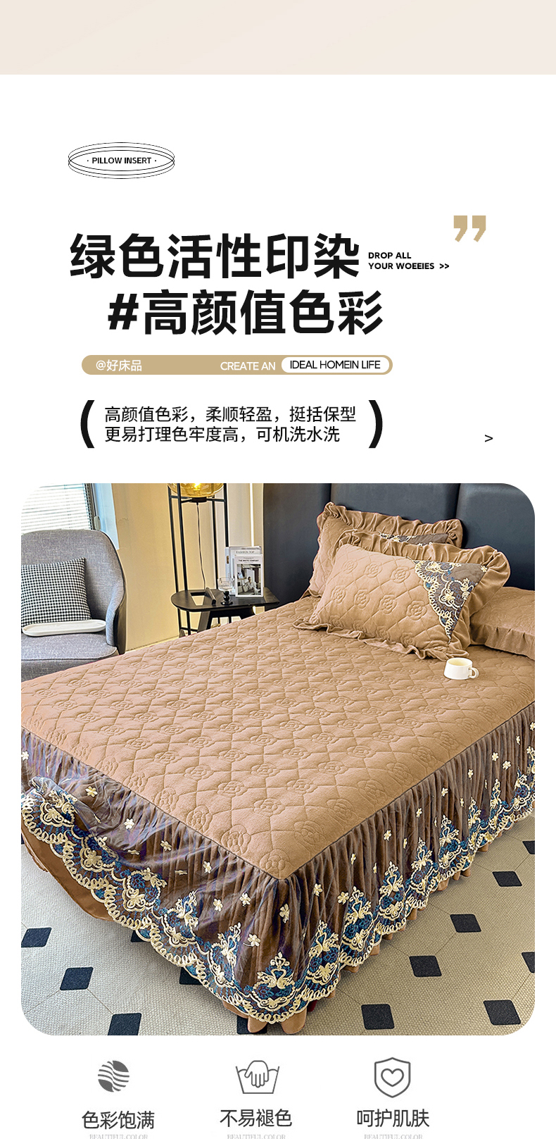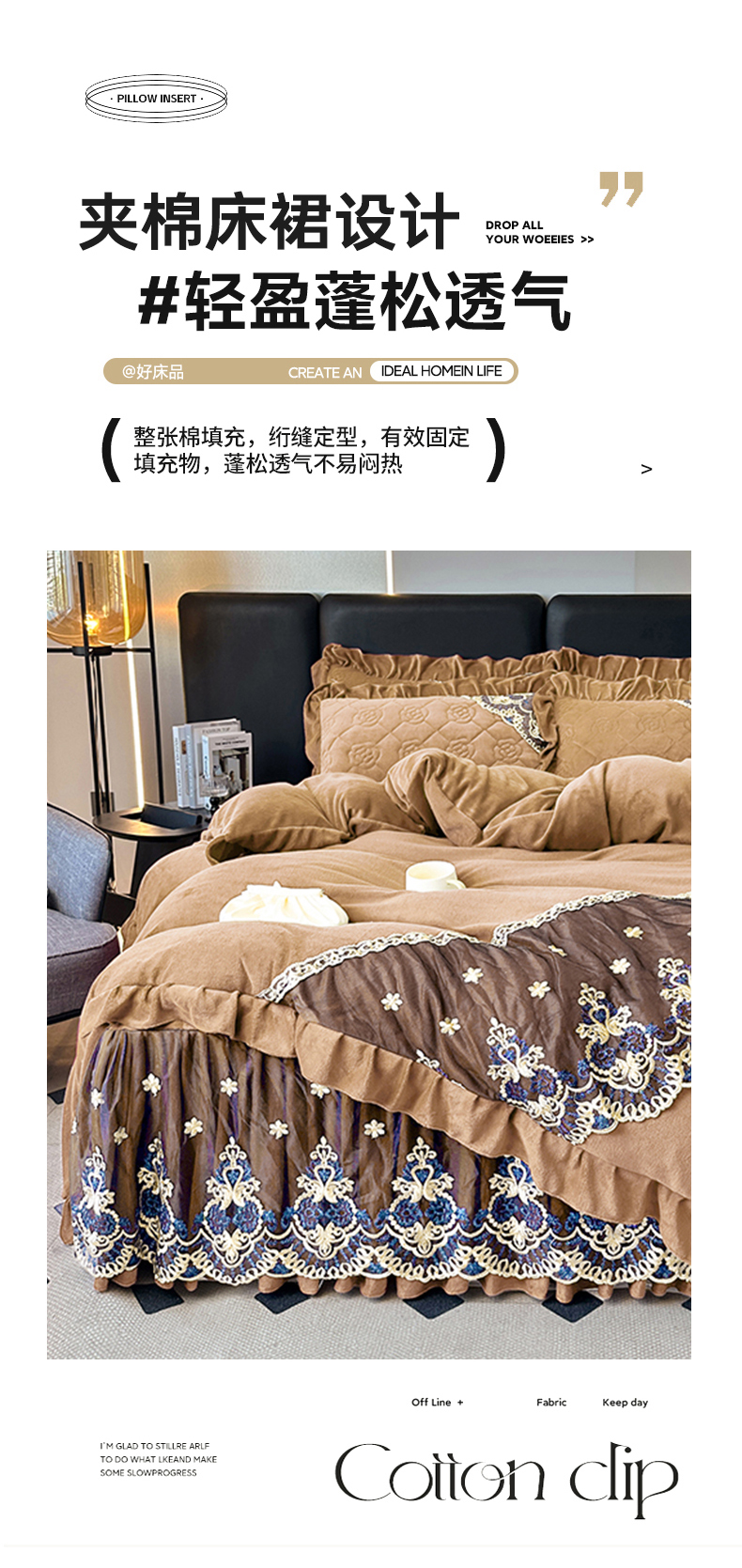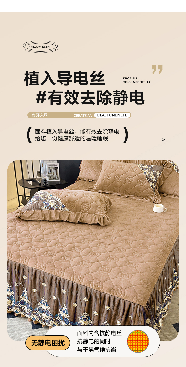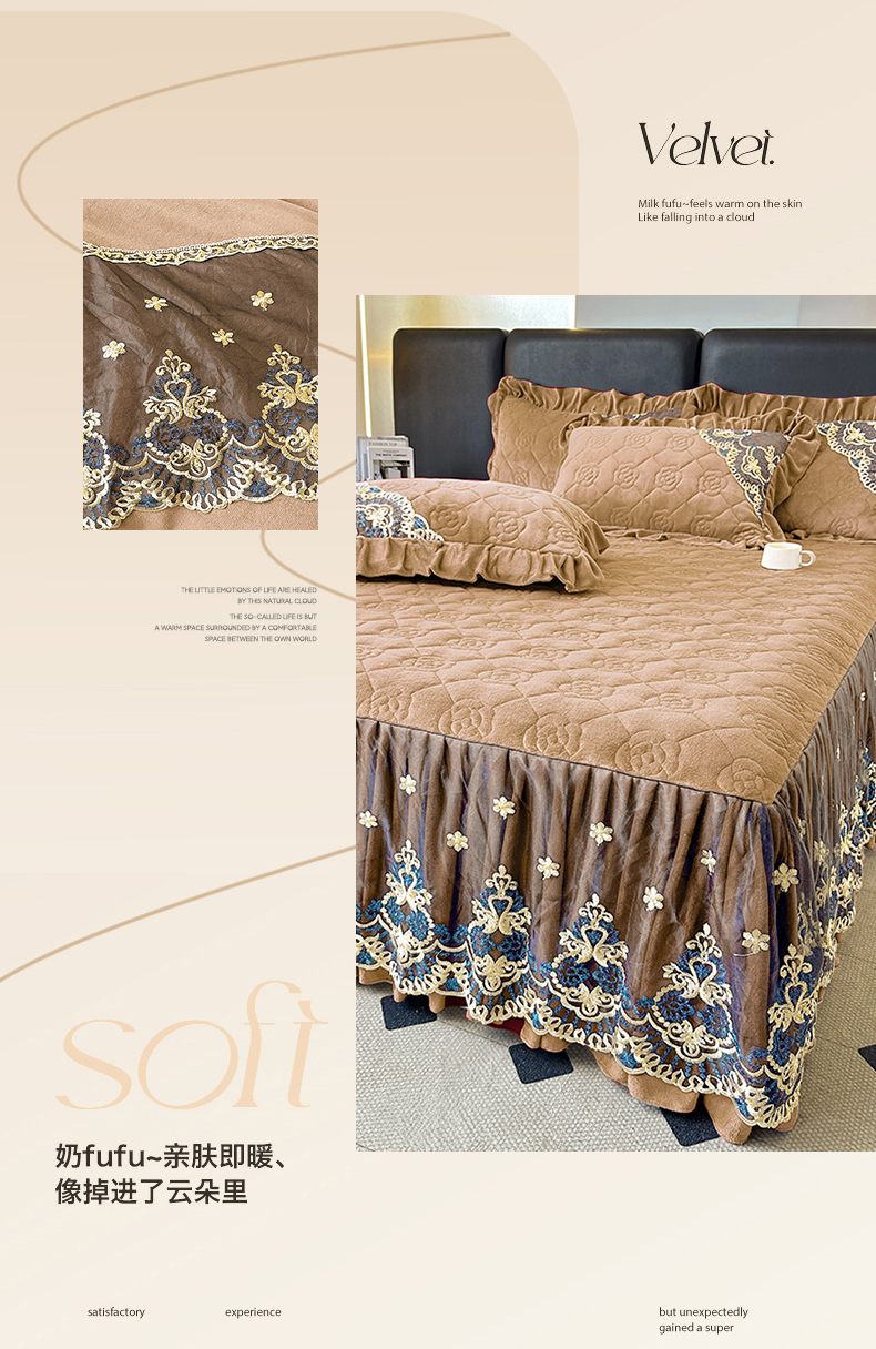 • 91家纺网 家纺一手货源 找家纺 罗艺轩 2025新款牛奶绒浪漫花边床裙款三件套-暖洋洋 暖洋洋-奶咖