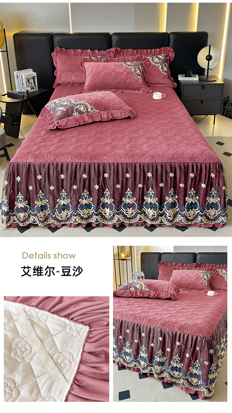 (总)罗艺轩 2025新款牛奶绒浪漫花边床裙款三件套-暖洋洋,暖洋洋-白,暖洋洋-豆沙,暖洋洋-灰,暖洋洋-酒红,暖洋洋-绿,暖洋洋-奶咖
