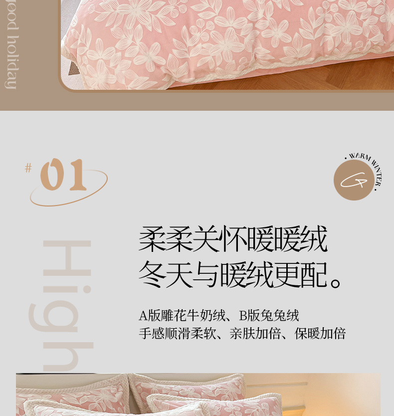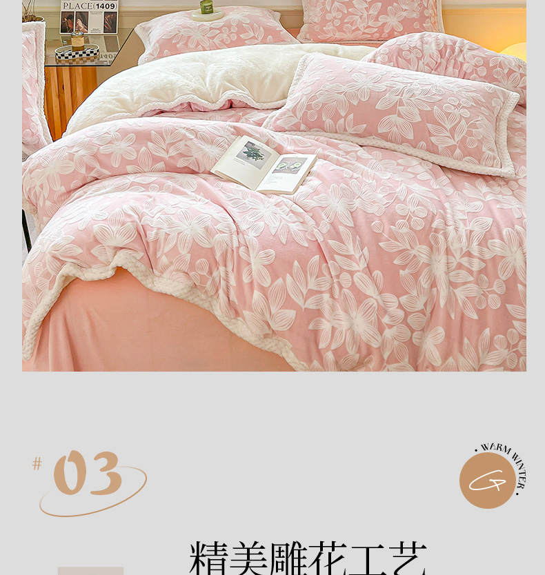 当前位置: 91家纺网 > 商品网购 > 床品套件 > 四件套 > 雕花绒四件套 > 琪格格纺织 2025新款全消光包边立体简约清新雕花绒四件套 雕花包边-安妮花苑 粉