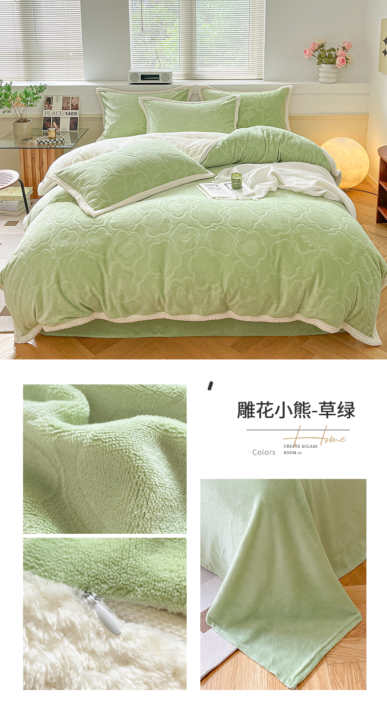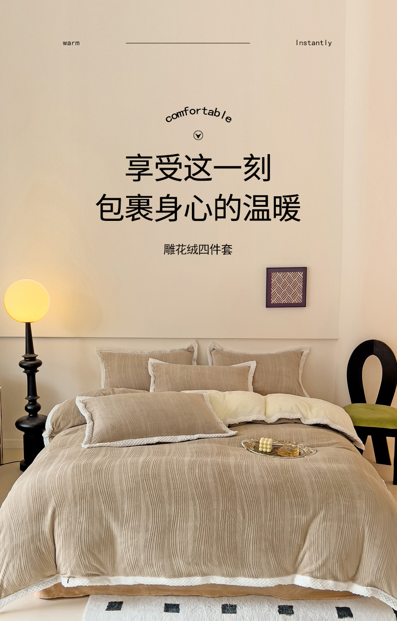 当前位置: 91家纺网 > 商品网购 > 床品套件 > 四件套 > 雕花绒四件套 > 琪格格纺织 2025新款全消光包边立体简约清新雕花绒四件套 雕花包边绒-叶之恋青