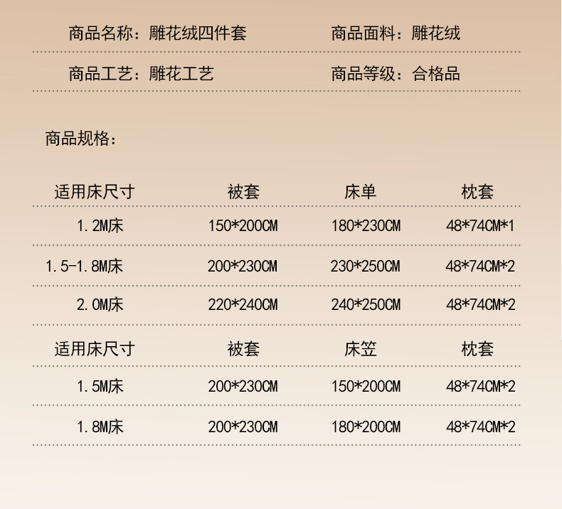 【床笠款】1.8四件套-被套200x230 | ¥120.00 |