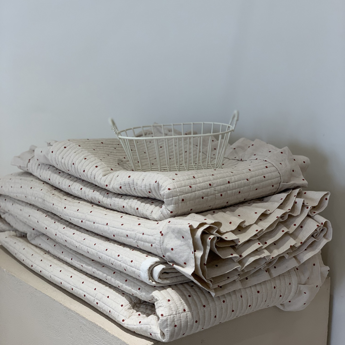 (总)汇庭 2025秋冬新款麻三月床盖三件套系列,黑点点,花絮粉,锦绣,梨花雨,青舍,三月,苏梨士,夜曲,组合