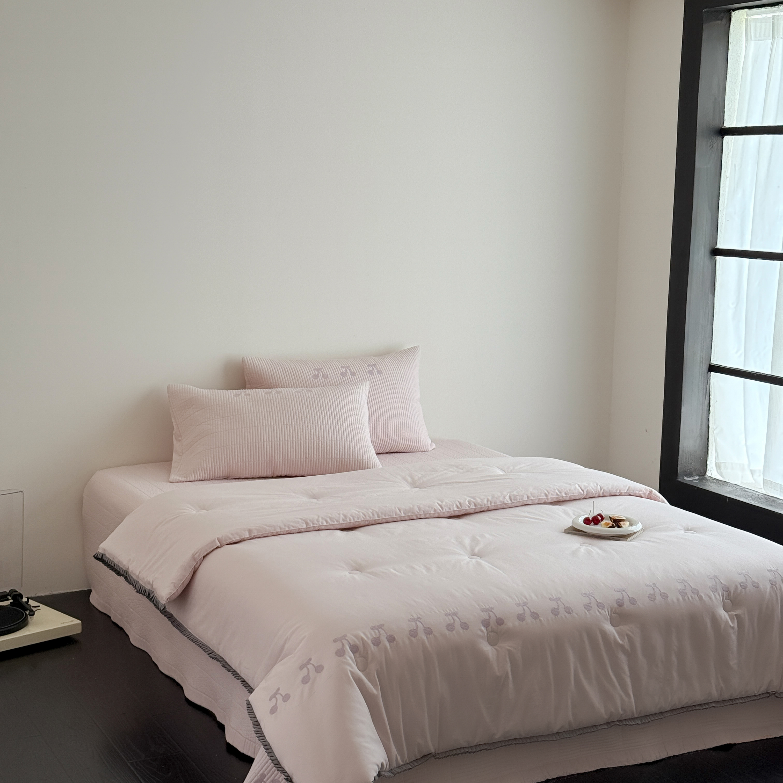 (总)汇庭 2025新款秋冬胖胖樱桃春秋被+樱桃菲菲床盖三件套,组合图下单仅供展示不可下单,粉色,绿色,米色