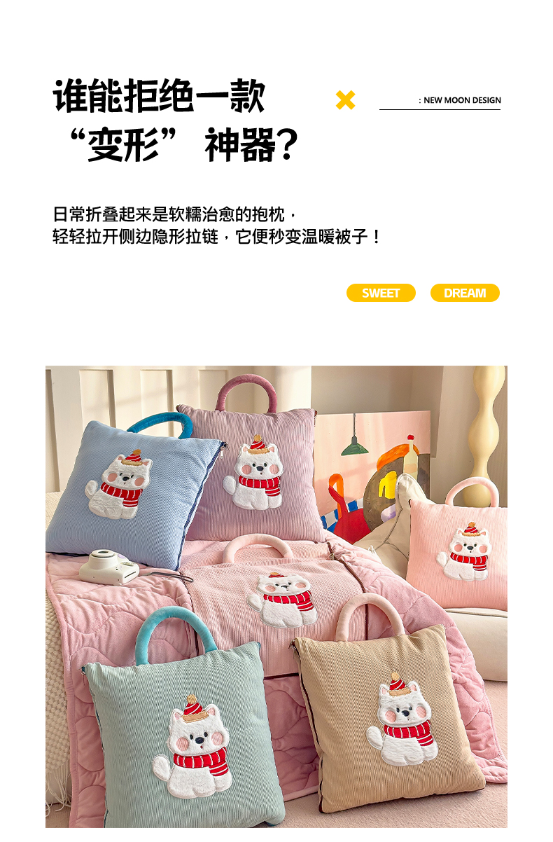 (总)诺可 2025新款丹麦绒贴布绣手提小猫抱枕被,小猫-黄,小猫-粉,小猫-灰,小猫-蓝,小猫-绿,组合图