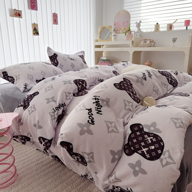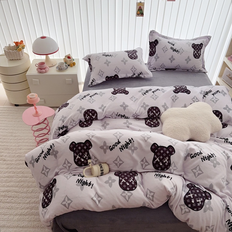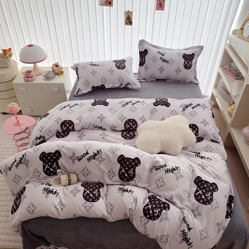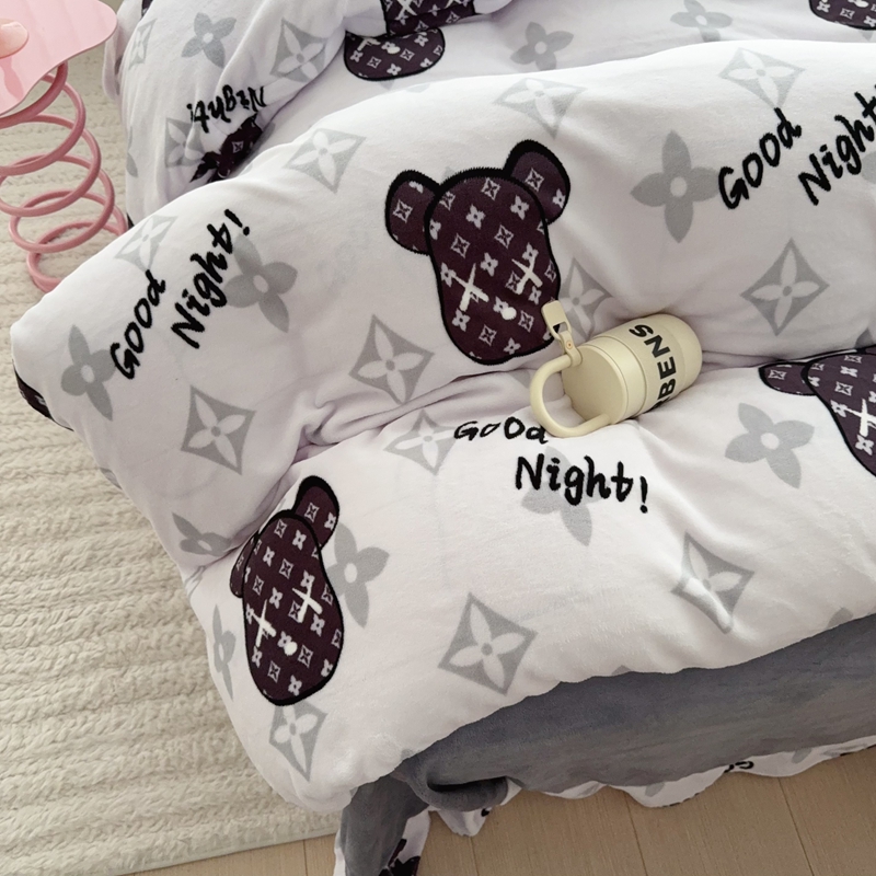 于果 2025新款牛奶绒印花四件套 乖乖熊