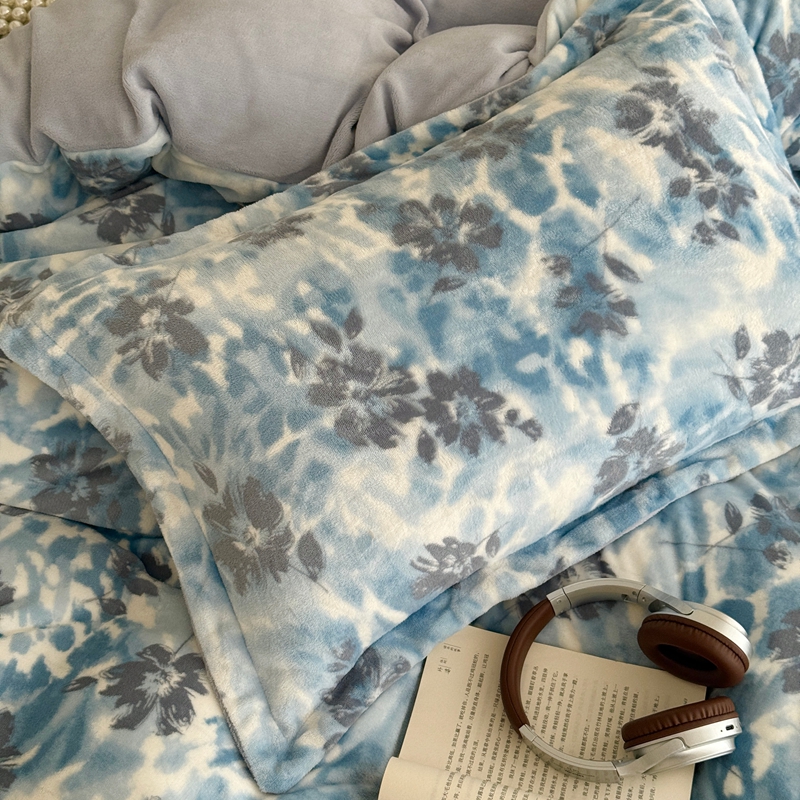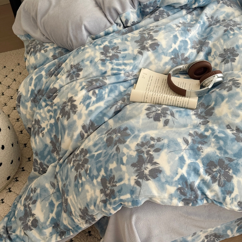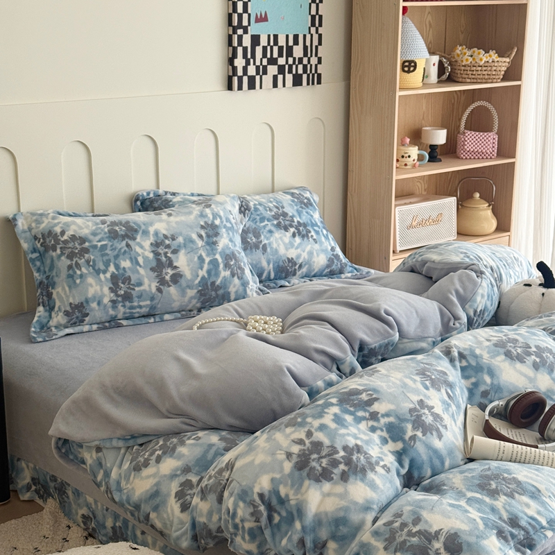 于果 2025新款牛奶绒印花四件套 浪漫花语-绿