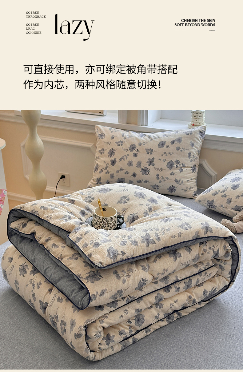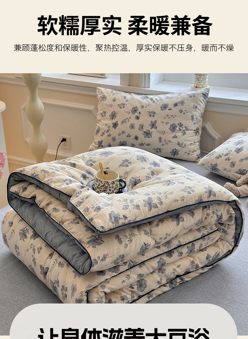 • 91家纺网 家纺一手货源 找家纺 尊妙被业 2025新款复古双层纱大豆被冬被被子被芯 季野