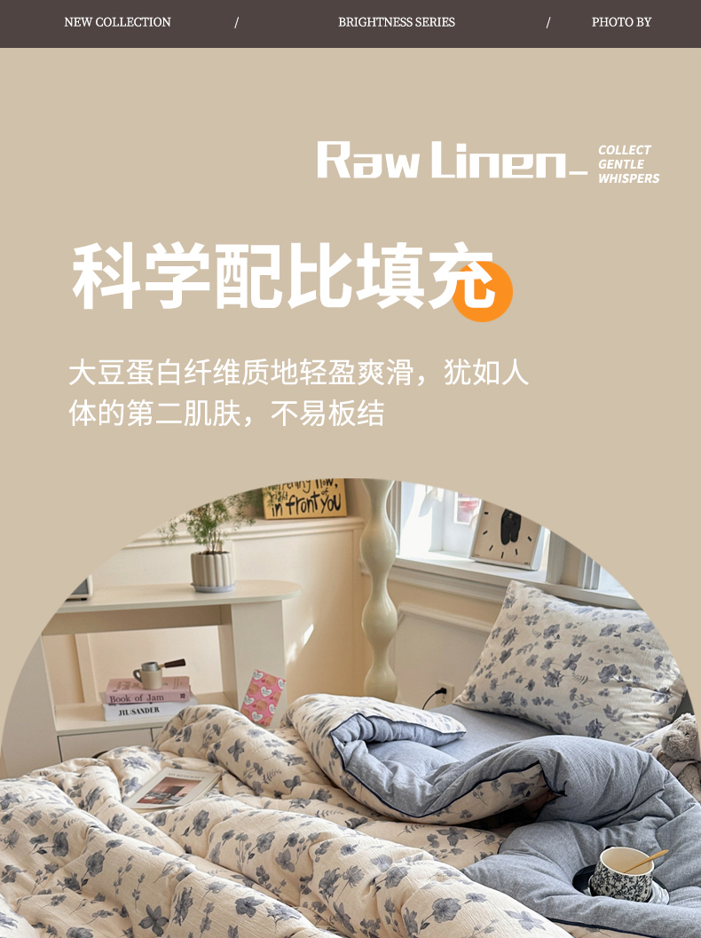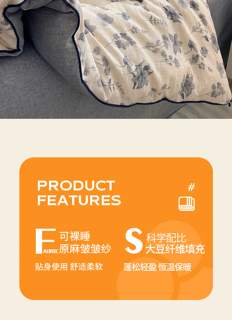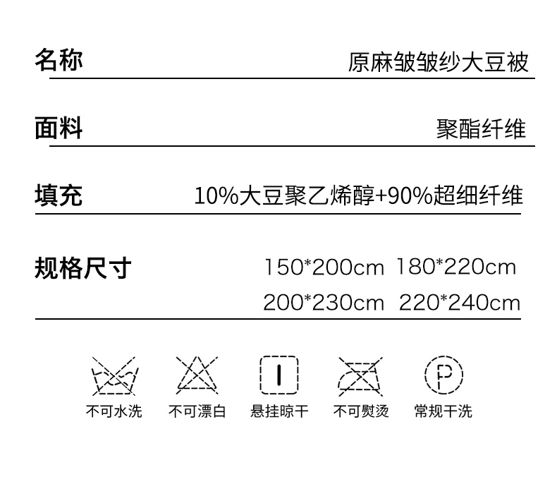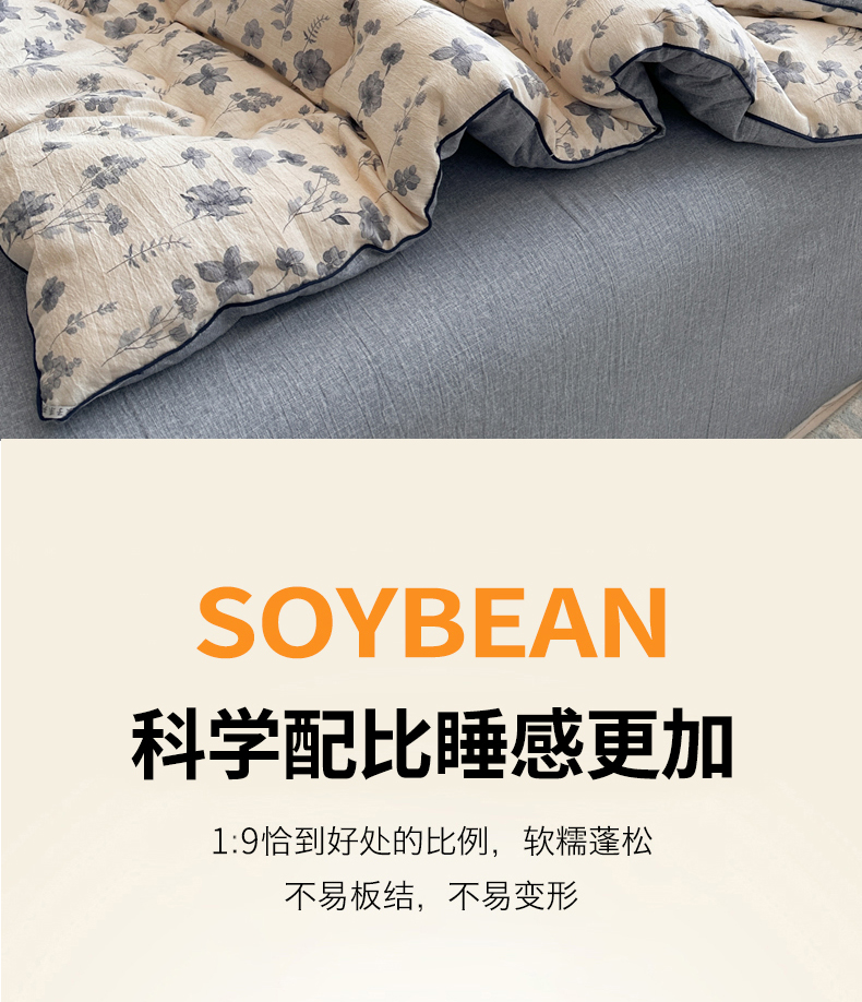 • 填充纤维种类: 大豆蛋白改性聚酯纤维