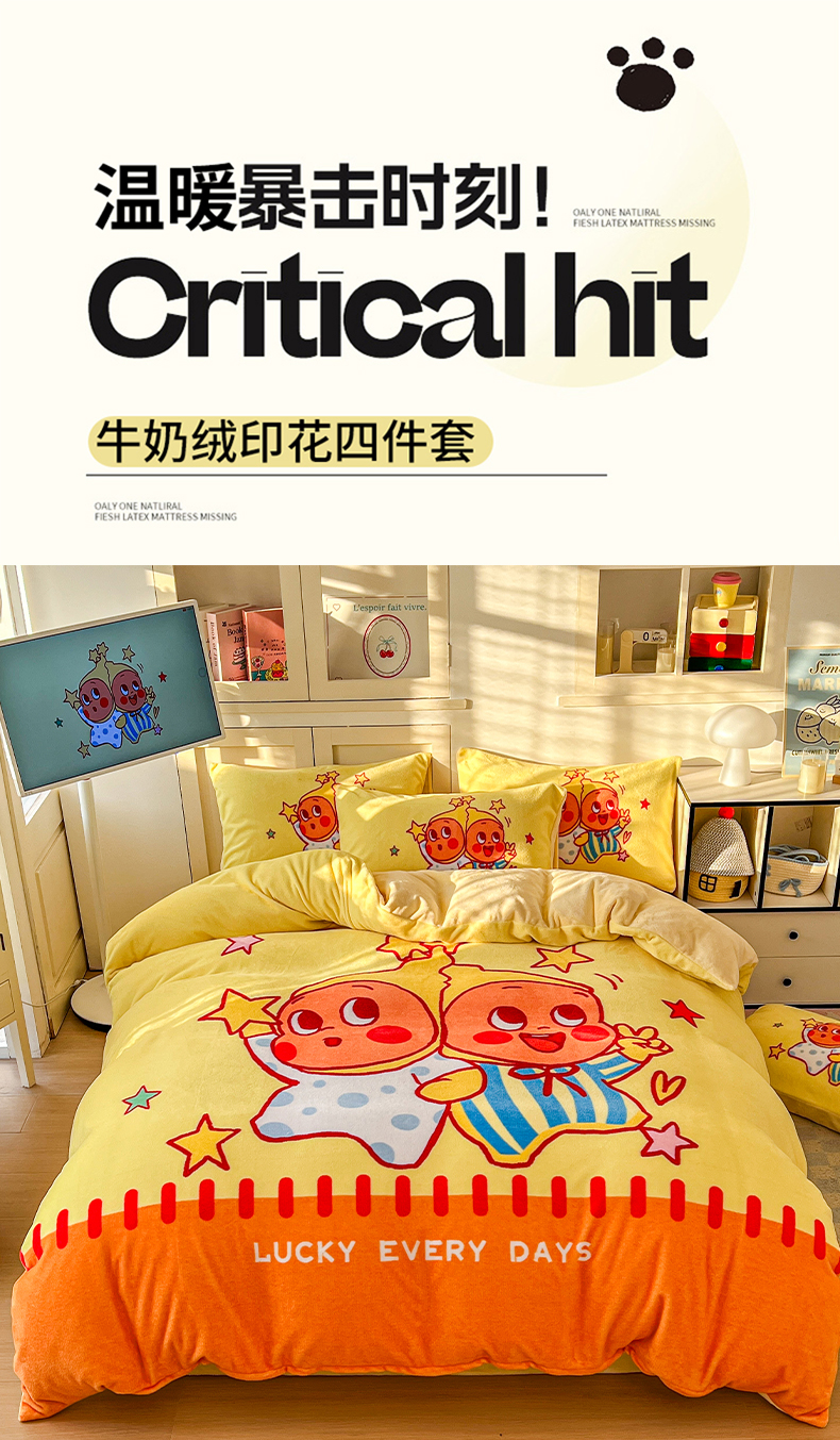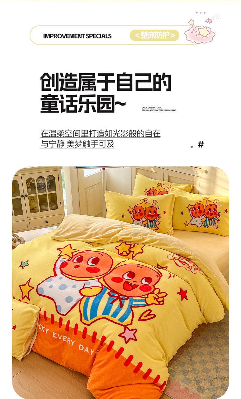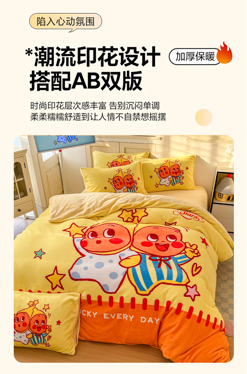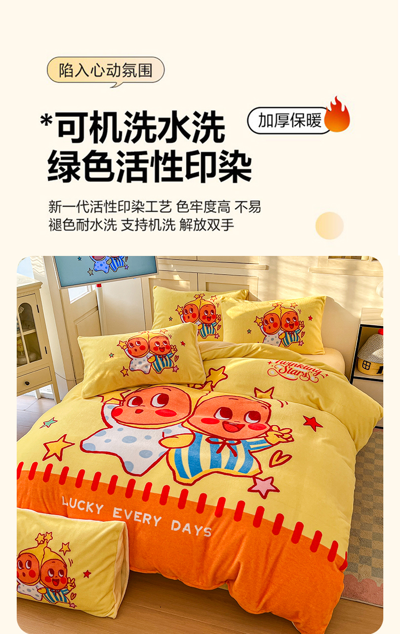 当前位置: 91家纺网 > 商品网购 > 床品套件 > 四件套 > 牛奶绒四件套 > 浩诚 2025新款高克重牛奶绒大版卡通四件套系列 小星仔