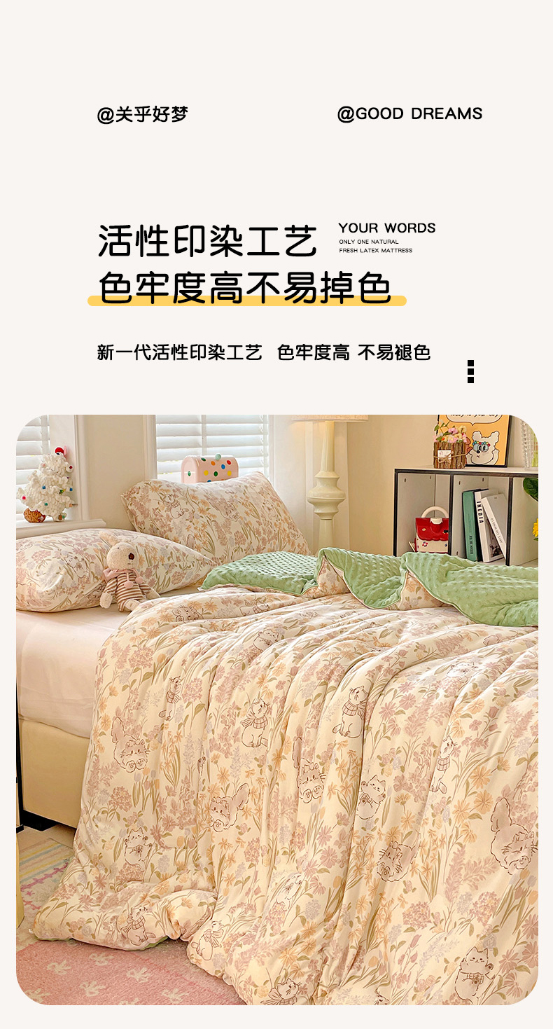• 91家纺网 家纺一手货源 找家纺 小叮当家纺仓储工厂店 2025新款A类母婴级宝宝被子牛奶丝针织棉豆豆被豆豆被子儿童婴童大豆被精品买家秀 花间小猫