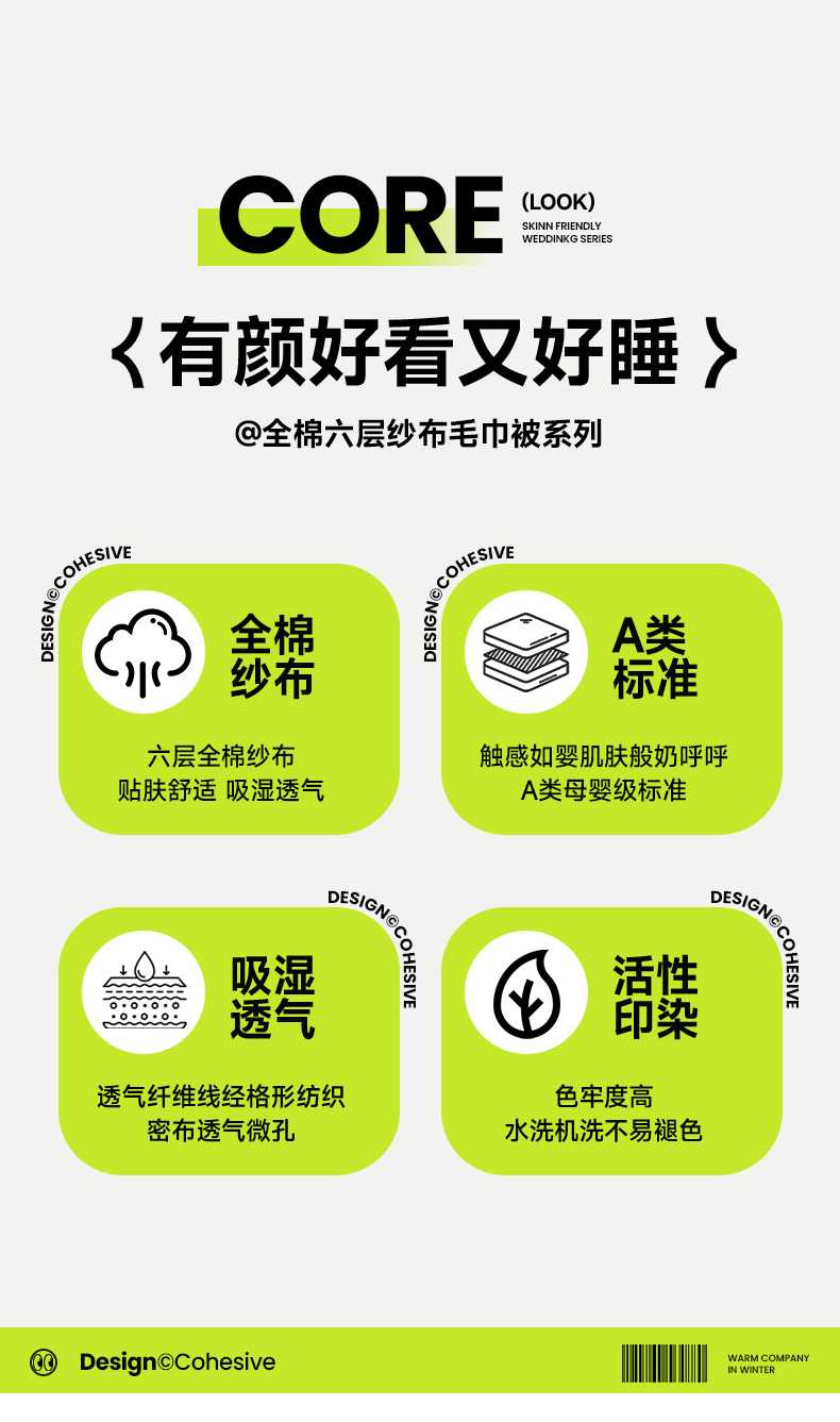 商品名称:小叮当家纺仓储工厂店 (买家秀 爆款花型 不断货)2025新款全棉六层纱布毛巾被系列 熊梦-绿
