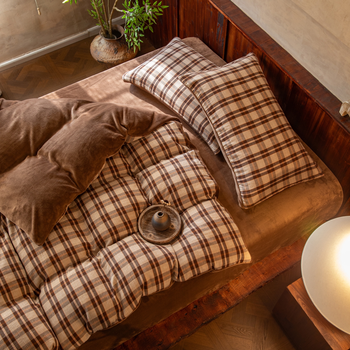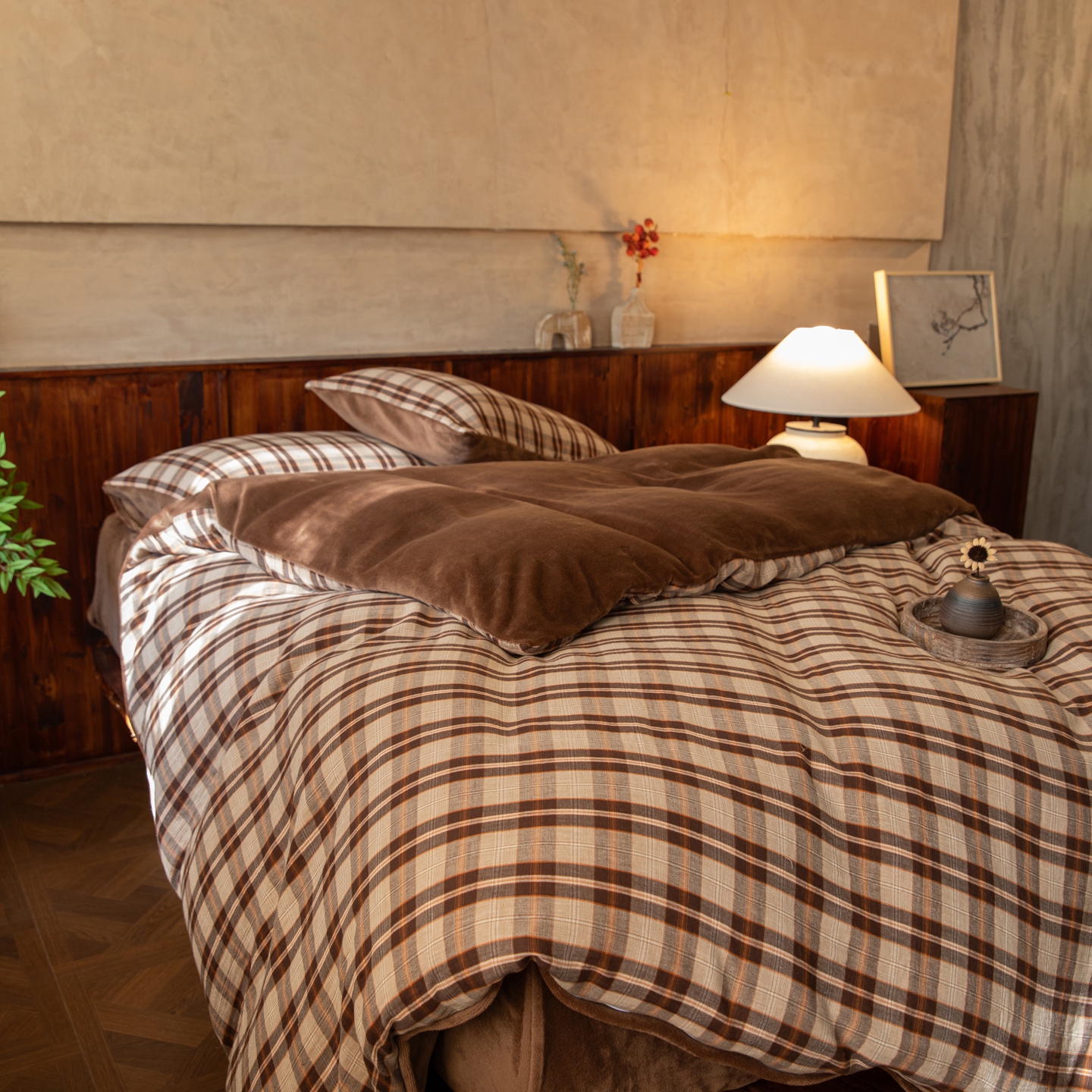 商品名称:仰望棉麻双层纱供应链 2025新款棉加绒A版双层纱B版德绒四件套 玛奇朵