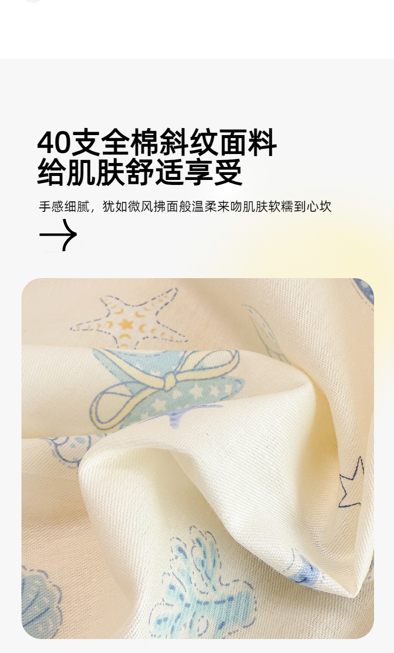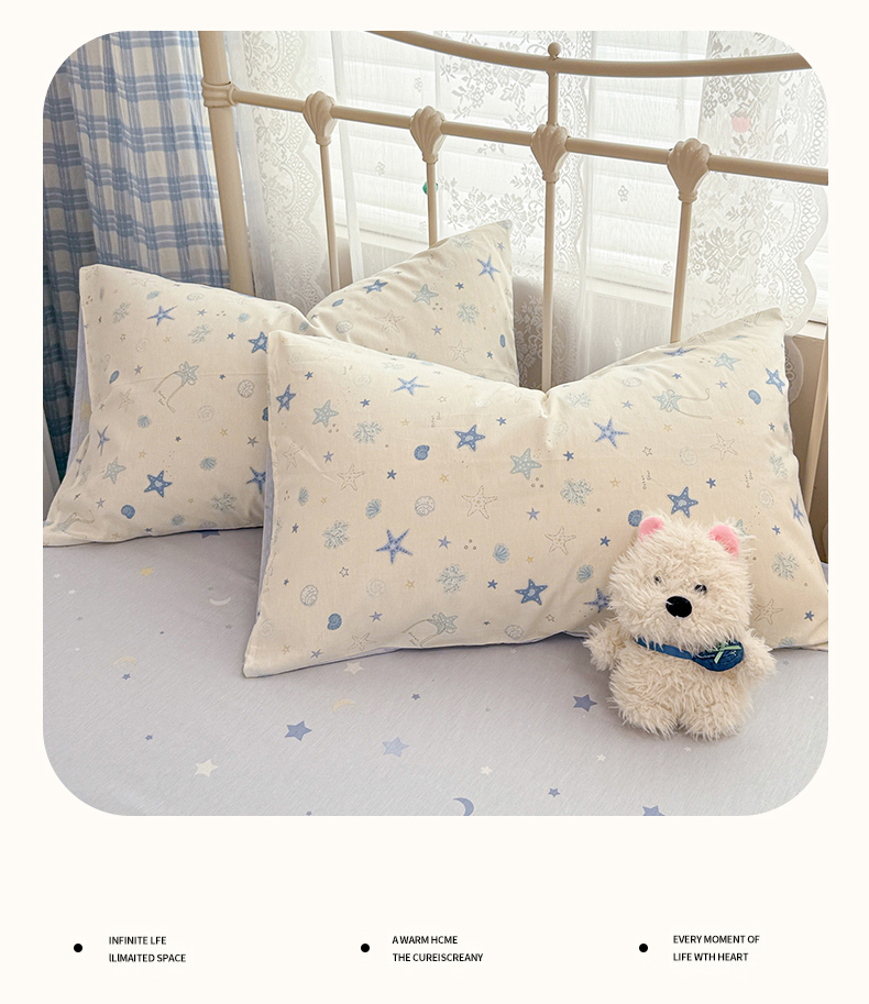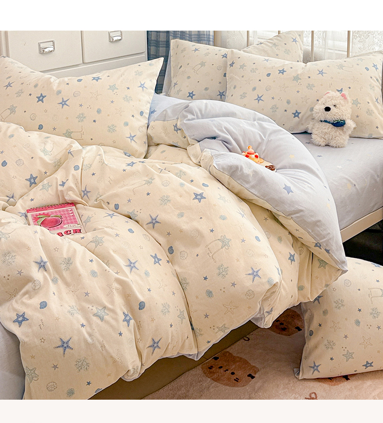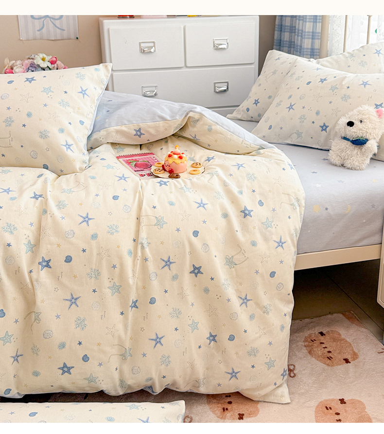 商品名称:简宜家居(朝初家纺) 2025新款12868全棉兔与花笺系列四件套 海星贝贝