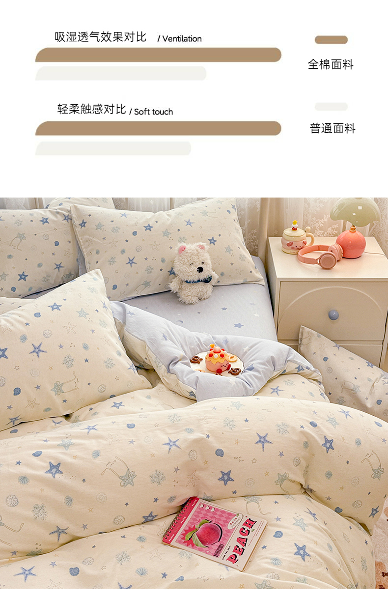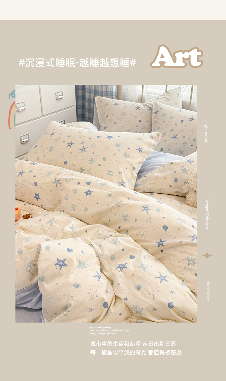 (总)简宜家居 2023新款小清新卡通纯棉全棉斜纹四件套,贩卖美好,蓝彩,蓝色心愿,梦享,奇妙农场,星月童话