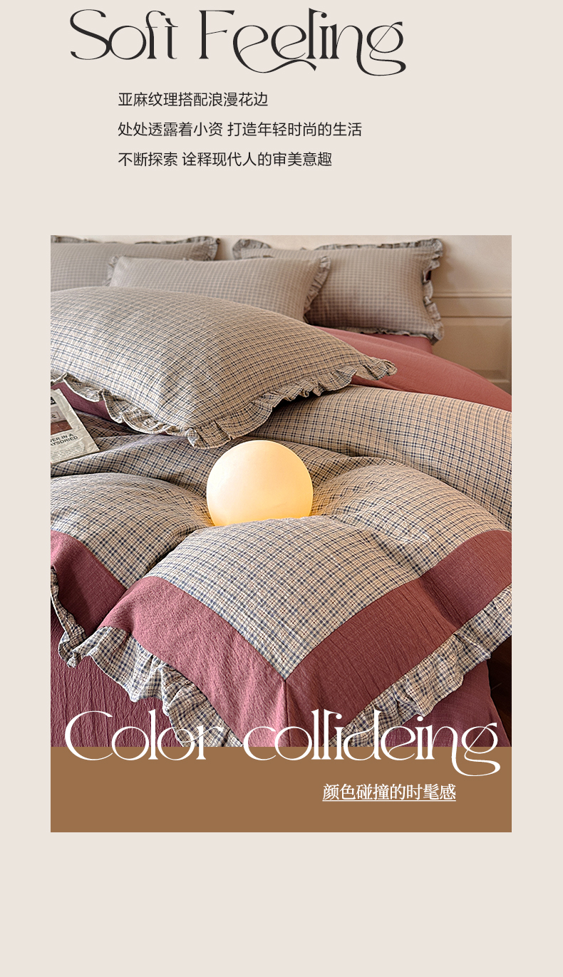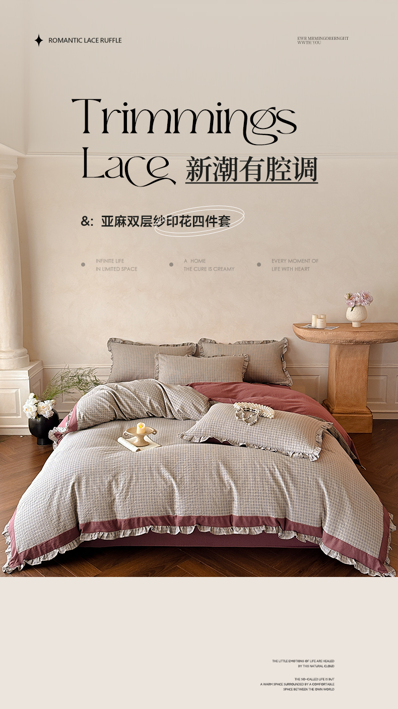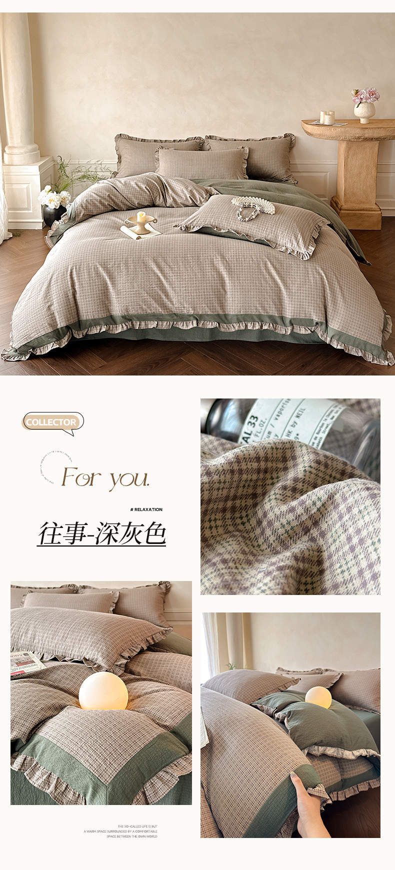 (总)遇见家居生活馆 2025新款亚麻双层纱印花四件套-往事,往事-枫叶红,往事-复古咖,往事-奶油黄,往事-浅灰色,往事-深灰色