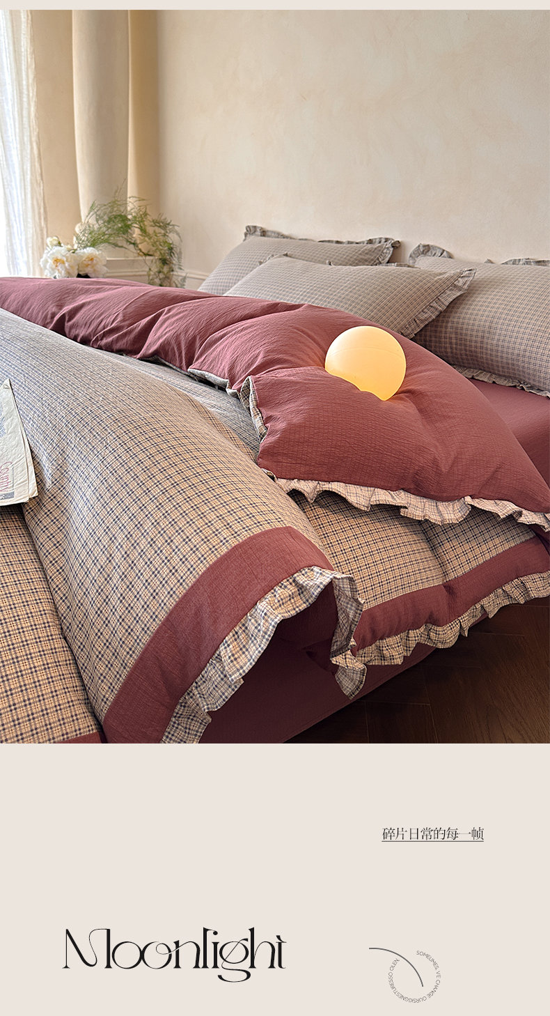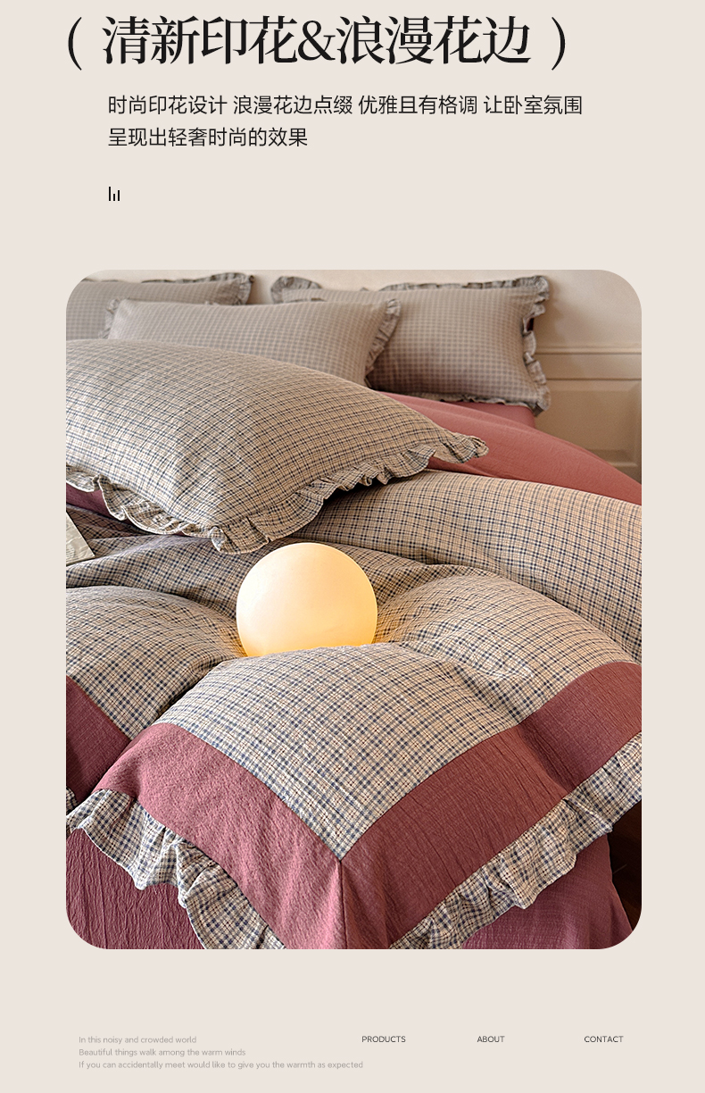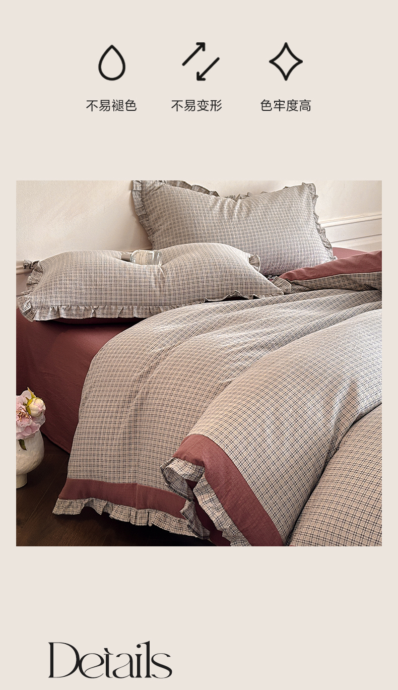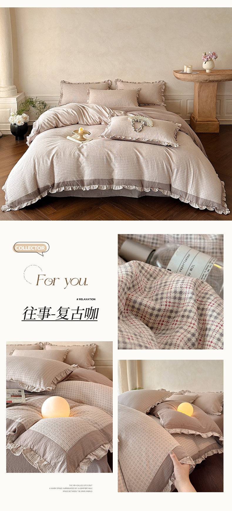 (总)遇见家居生活馆 2025新款亚麻双层纱印花四件套-往事,往事-枫叶红,往事-复古咖,往事-奶油黄,往事-浅灰色,往事-深灰色