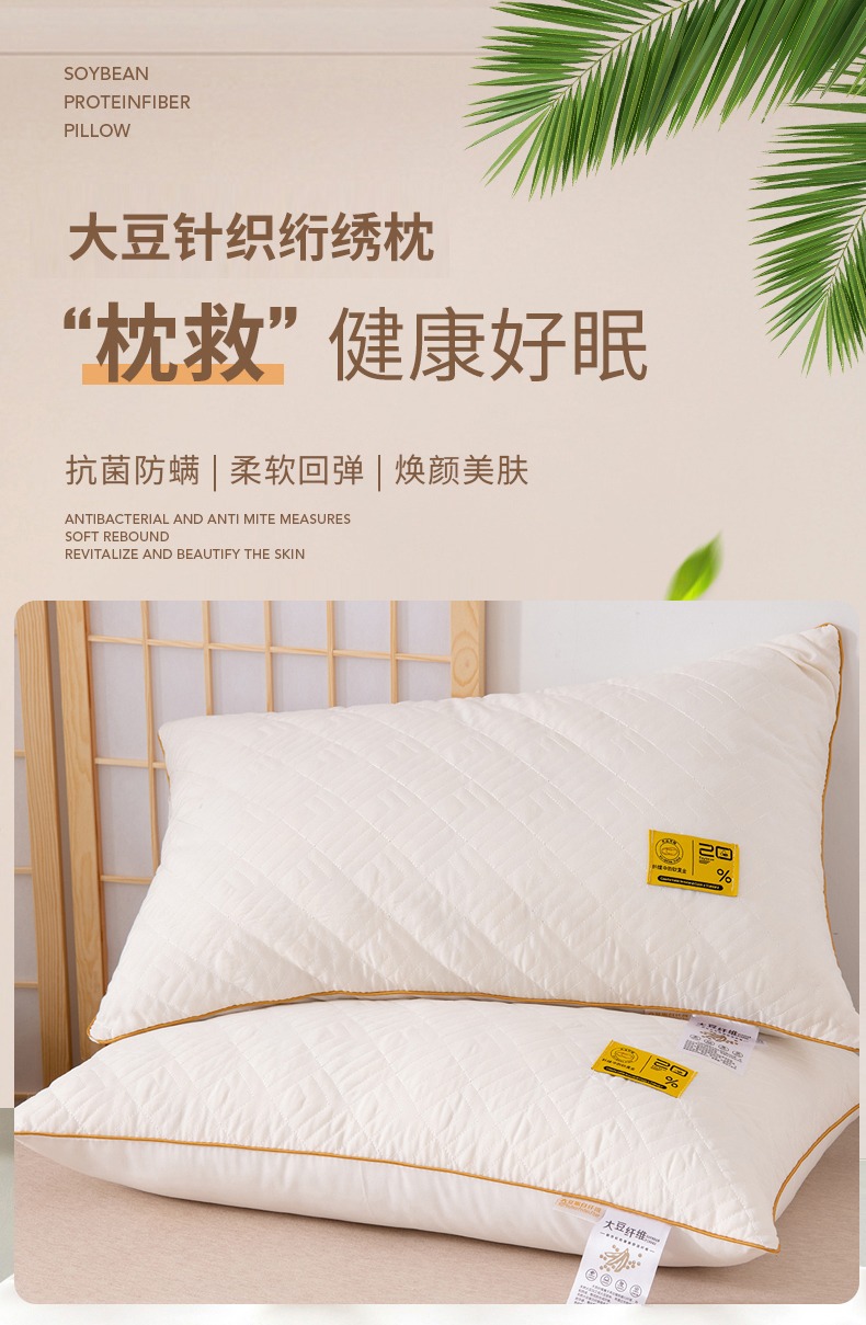 (总)佳尚枕芯 2025新款大豆蛋白单边针织绗绣枕枕头枕芯