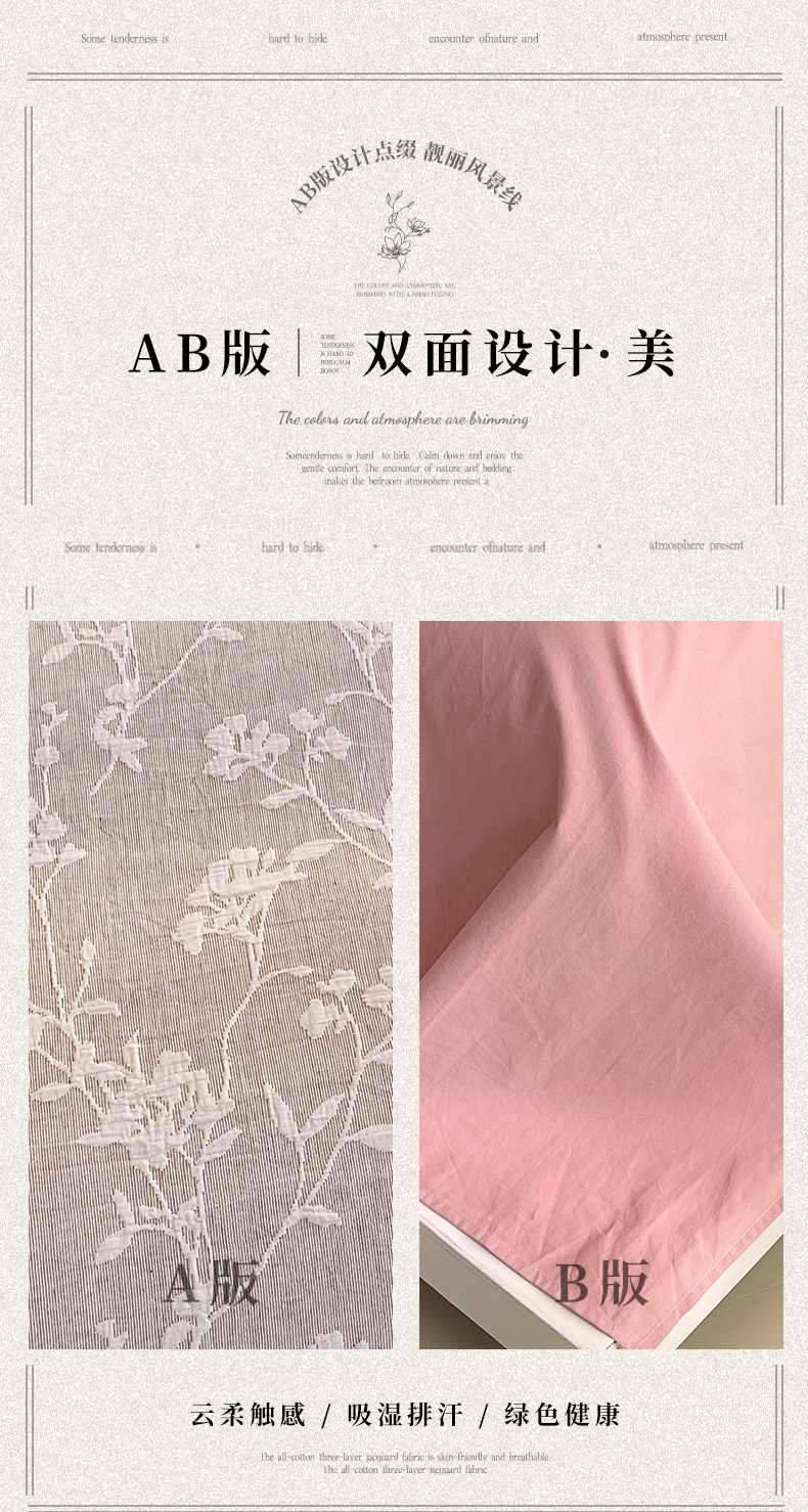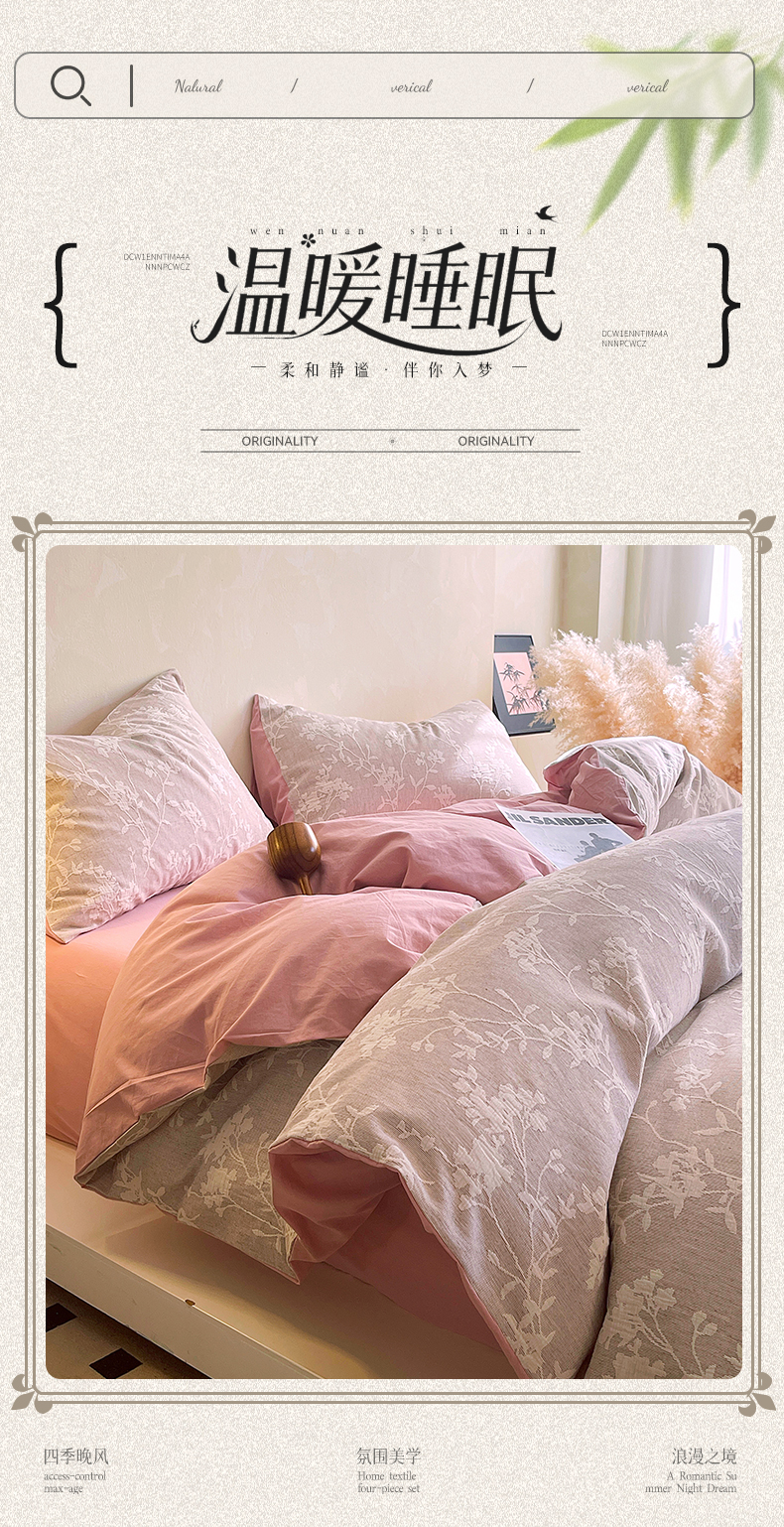 (总)春皖家纺 2026新款A类全棉三层纱AB版简约四件套-风格二