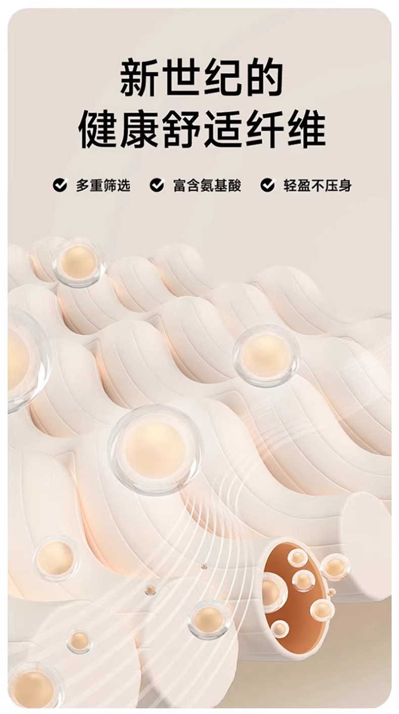 • 填充纤维种类: 大豆蛋白改性聚酯纤维