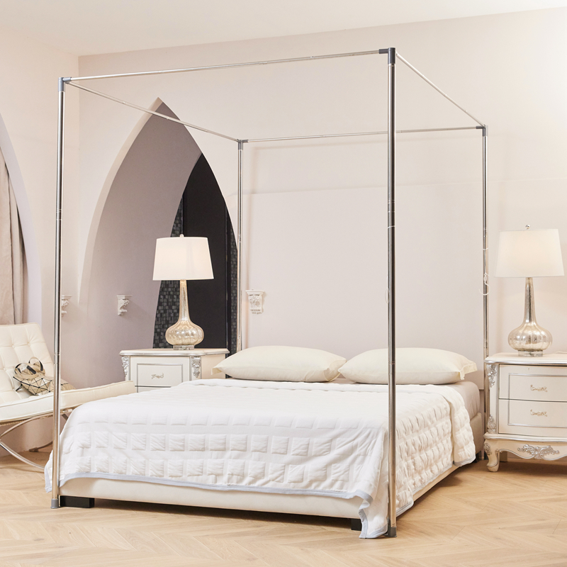 (总)胜权家纺 2026新款落地宫廷不锈钢蚊帐单支架及配件,不锈钢单支架,不锈钢三通4个,铝合金压脚板4个,加固三角斜撑8组