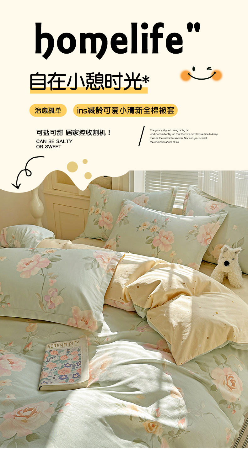 当前位置: 91家纺网 > 商品网购 > 床上用品 > 被套 > 春雨家居 2026新款全棉印花ins减龄可爱小清新单被套 夏日花莳