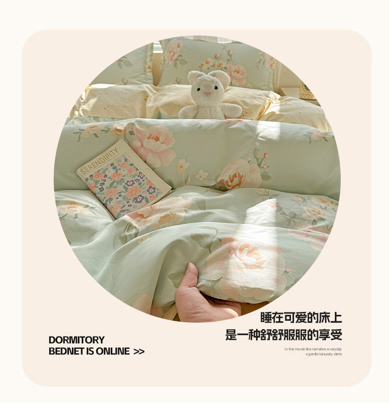 (总)春雨家居 2026新款全棉纯棉花ins减龄可爱小清新四件套(提供买家秀、质检报告、有预留缩水)),贝尔兰-兰,比星邦尼狗,布布迷宫,春漫庭,达乐宝贝,朵唯,芙莉,格子布丁狗,故事小黄花,韩系拼图,旧书折痕-蓝,蓝拼KT-兰,浪漫花园,洛克庄园-绿,萌趣汪汪,暮洛星,奶油凯蒂-兰,奶油羞羞狗,清秋夜曲,秋日确幸-豆沙,苏林-绿,苏糖-粉,夏日花莳,小菠萝,小猫时光-兰,心动庄园,星星童话园-兰,叶语轻喃-绿,玉海棠,芋泥小狗,醉梦惜花