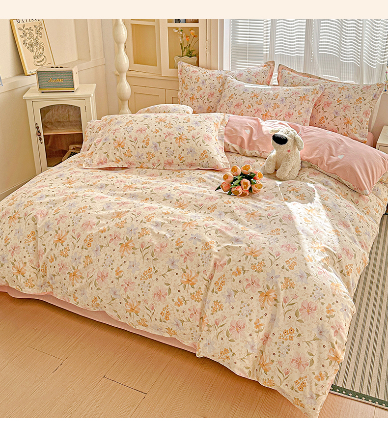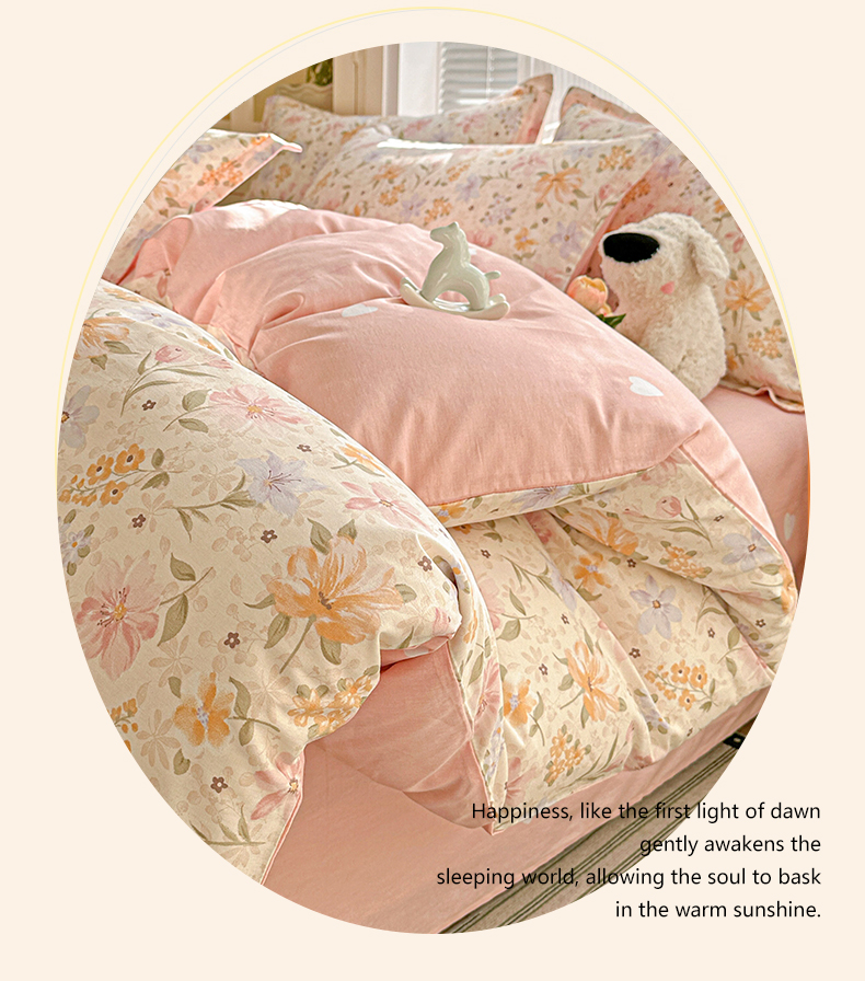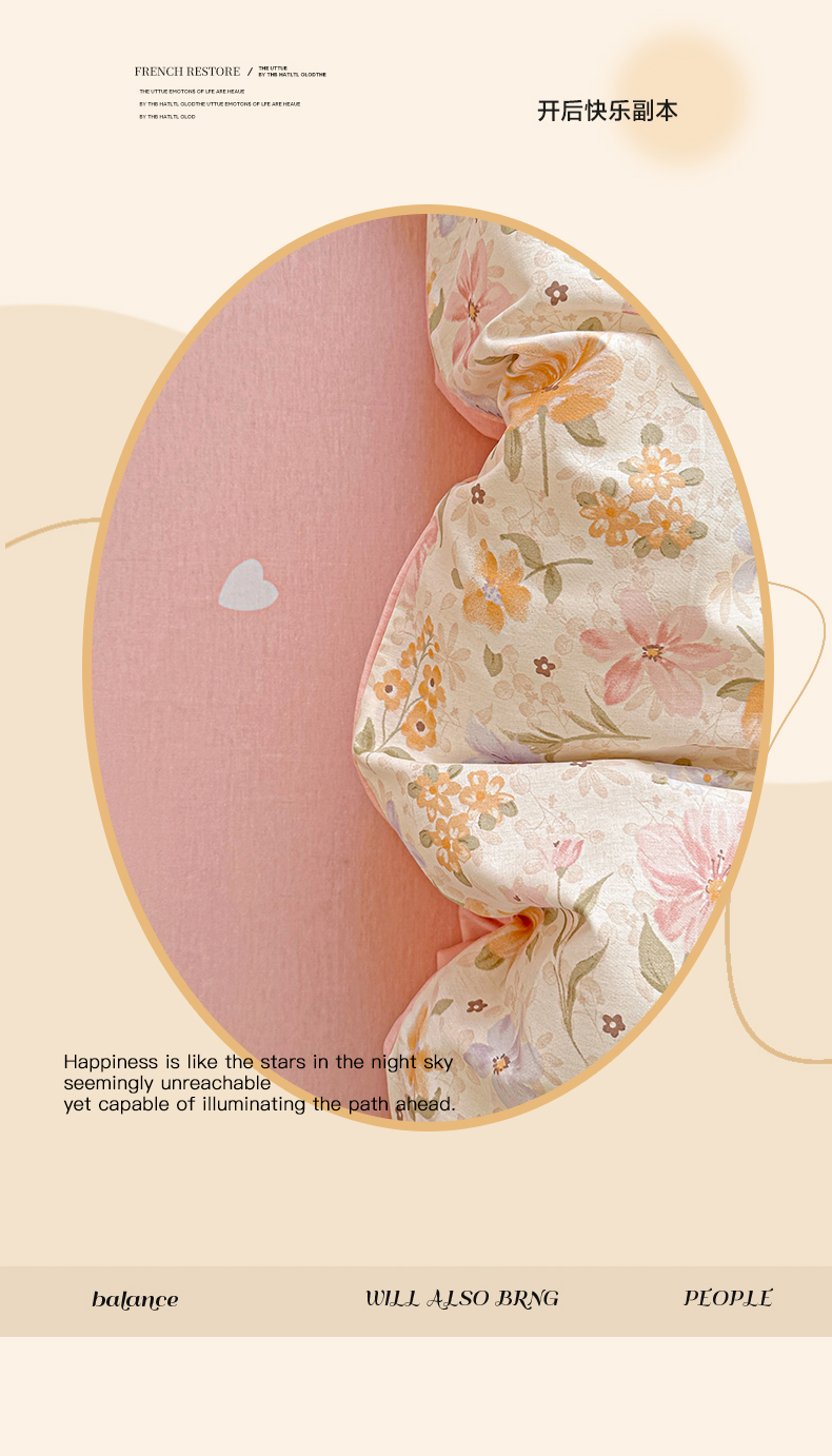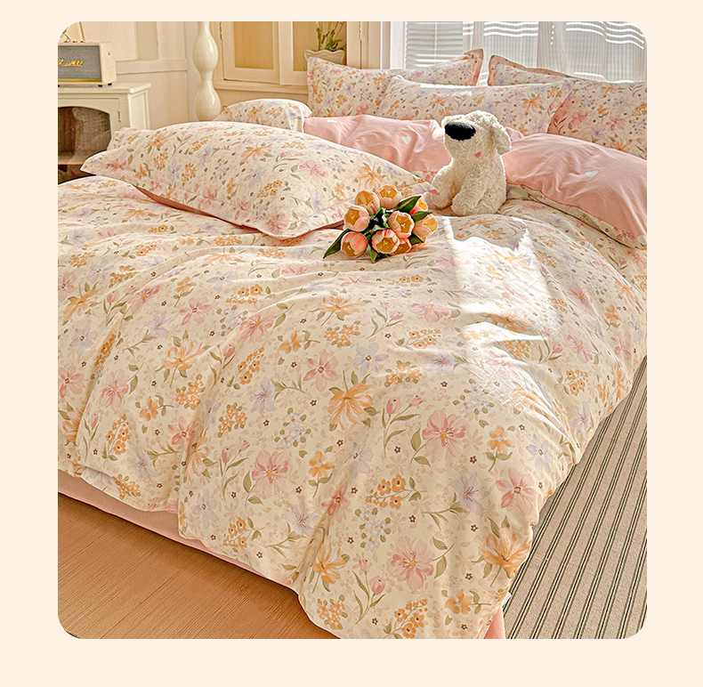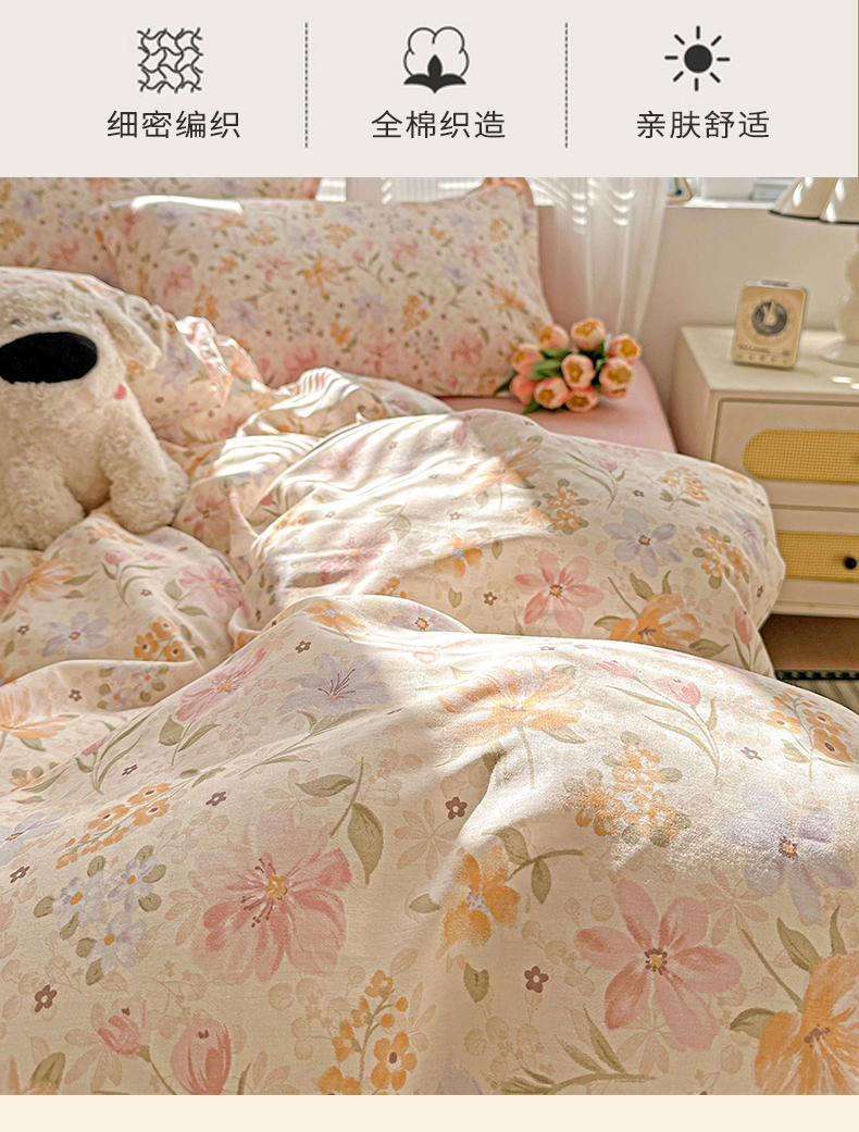 当前位置: 91家纺网 > 商品网购 > 床品套件 > 四件套 > 全棉普通四件套 > 春雨家居 2026新款全棉纯棉花ins减龄可爱小清新四件套 苏糖-粉
