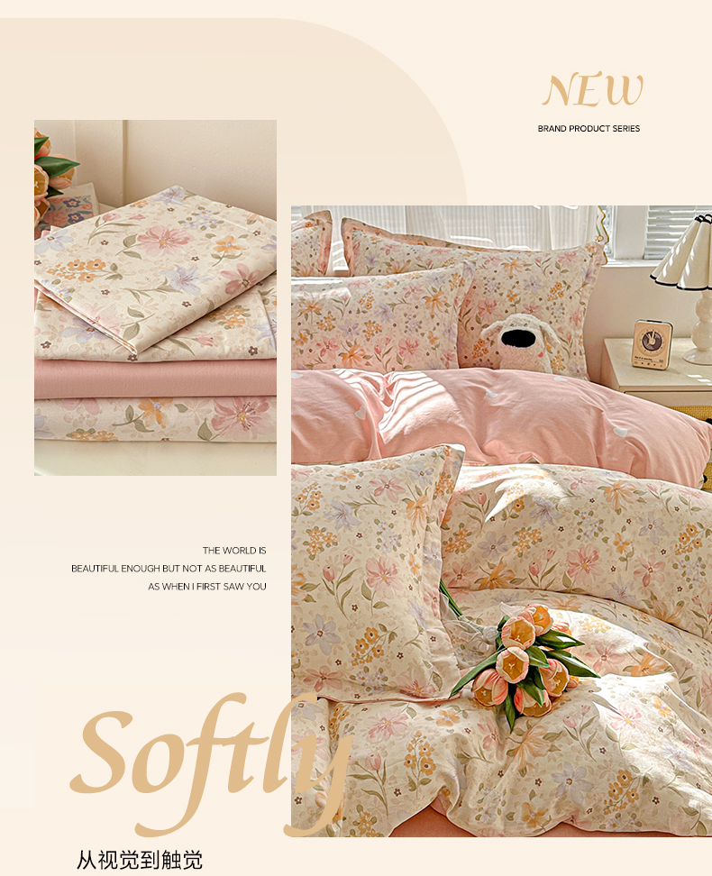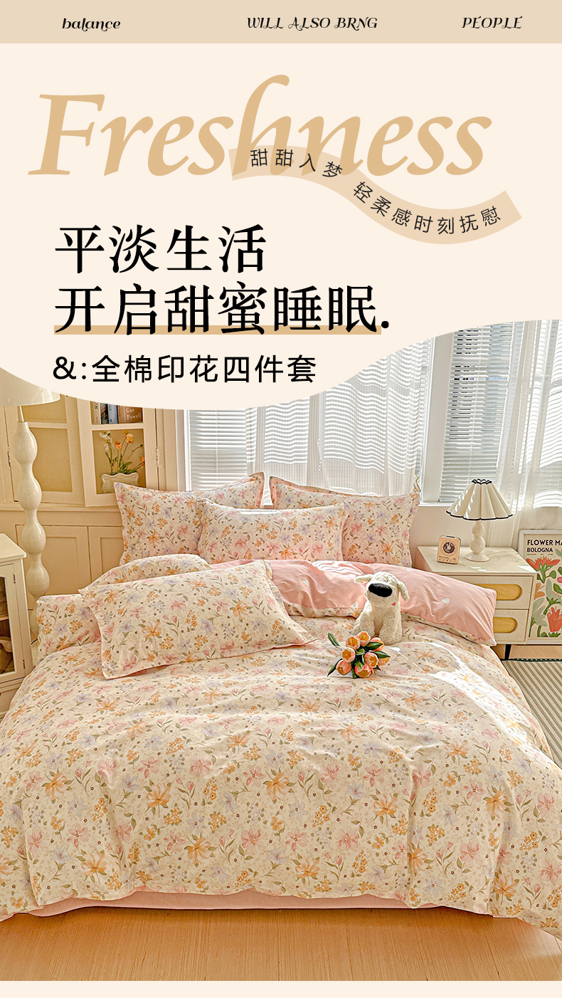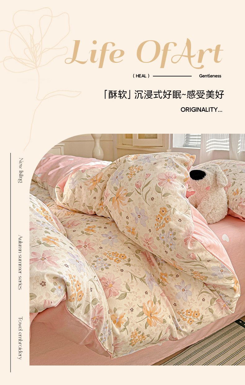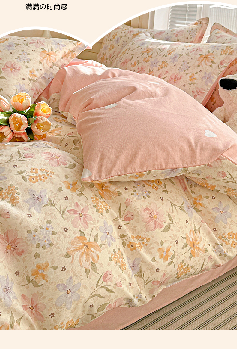 当前位置: 91家纺网 > 商品网购 > 床品套件 > 四件套 > 全棉普通四件套 > 春雨家居 2026新款全棉纯棉花ins减龄可爱小清新四件套 苏糖-粉