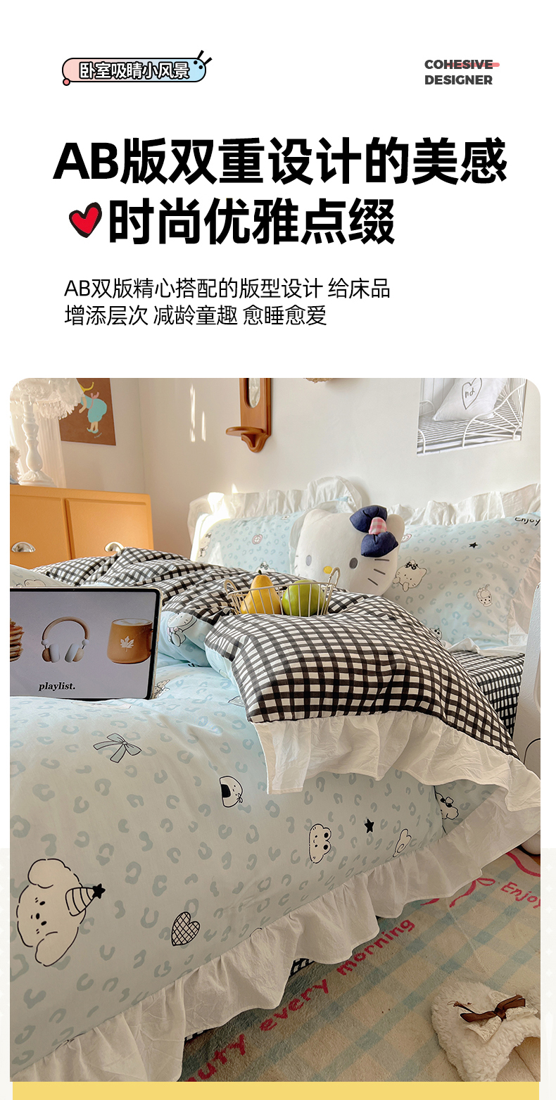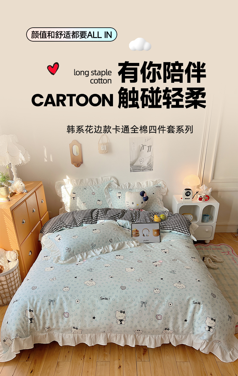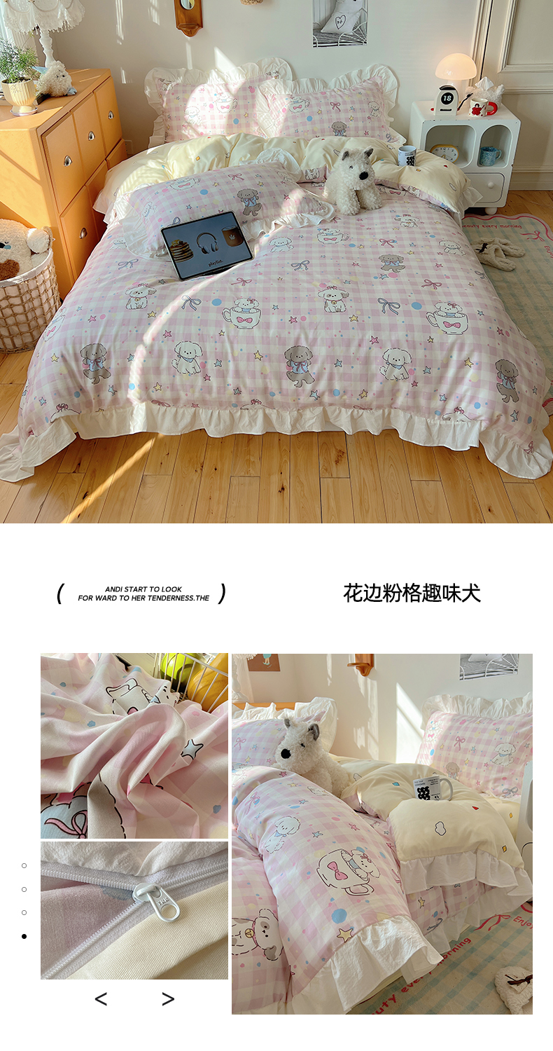 (总)六巷胡同 2025新款韩式INS卡通减龄花边款全棉四件套(第三系),花边波点嘟嘟猫,花边点点面包犬,花边调皮蔷薇狗,花边法棍滑板狗,花边粉格元气猫,花边哈喽泡芙猫,花边蓝格邦尼熊,花边蓝格插画犬,花边泡芙萌趣狗,花边森林音乐会,花边仙人掌粉象,花边熊熊猫咪崽,花边郁金香狗狗