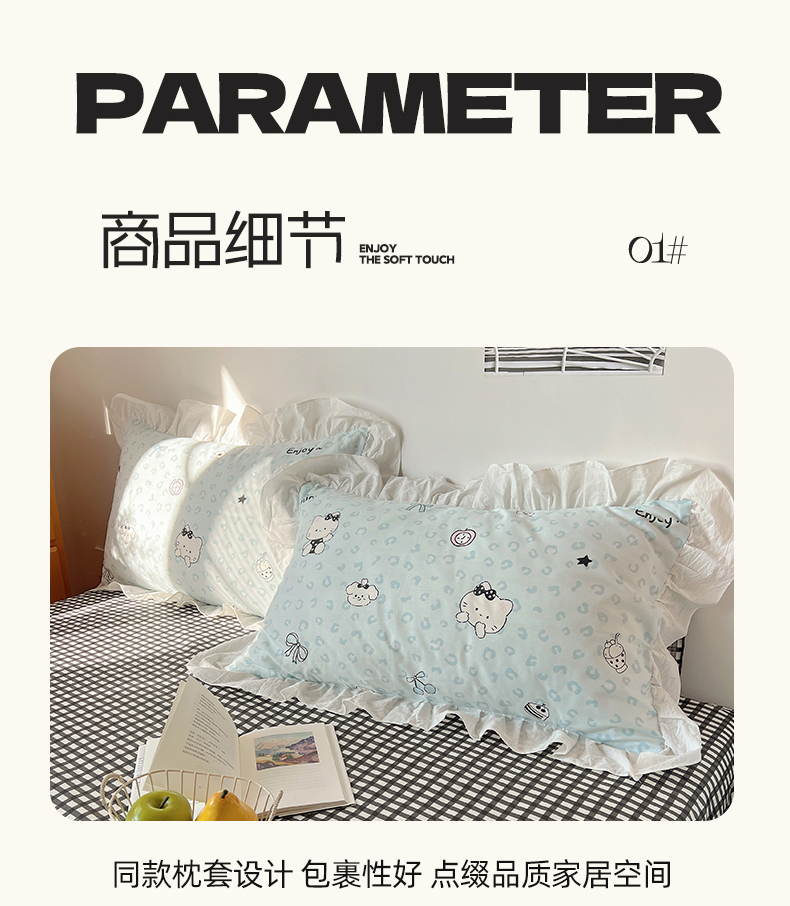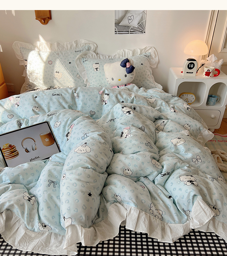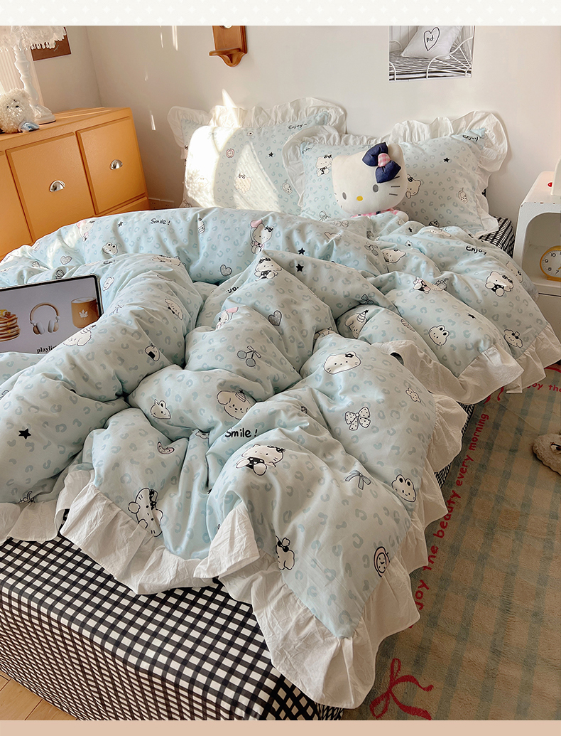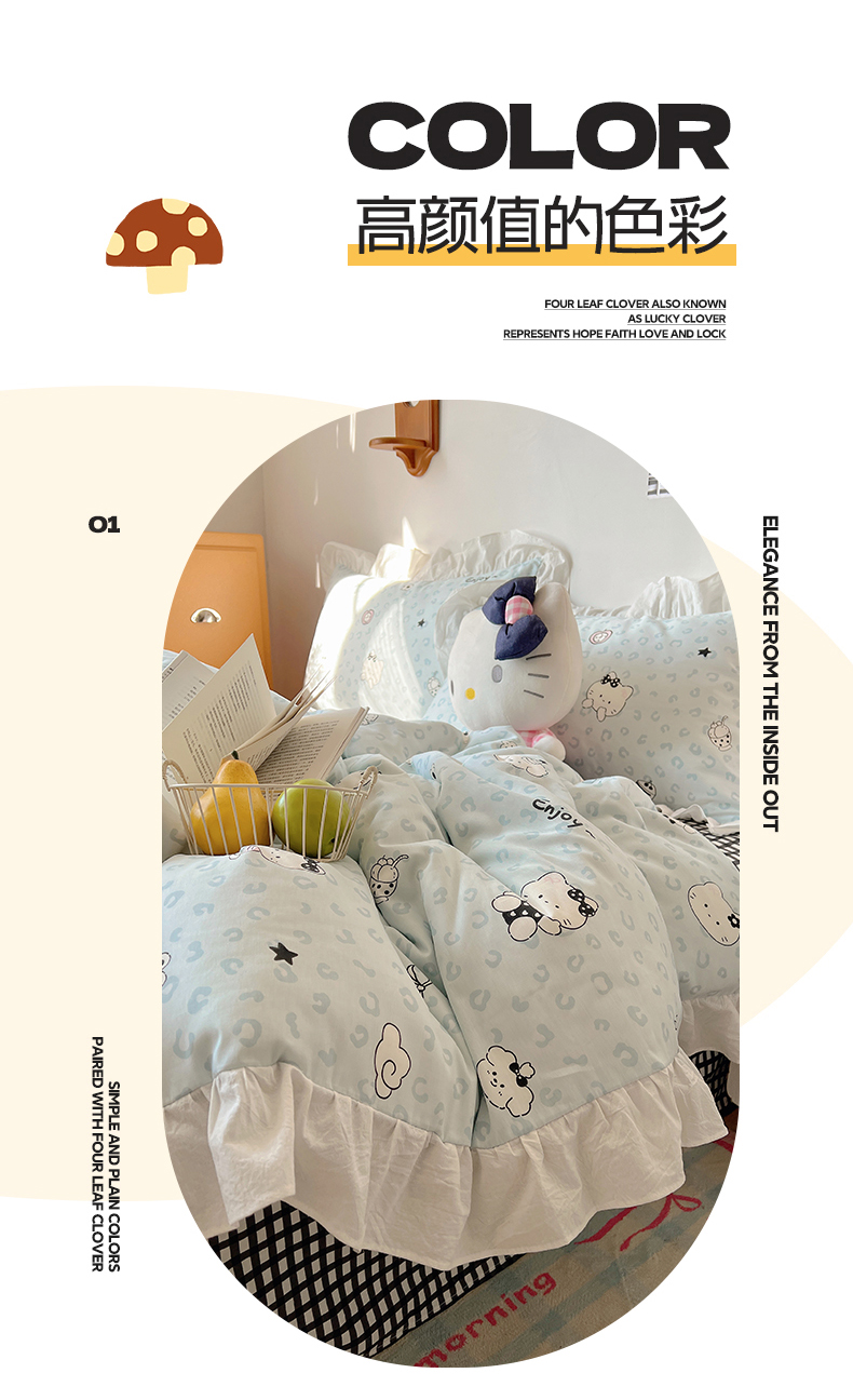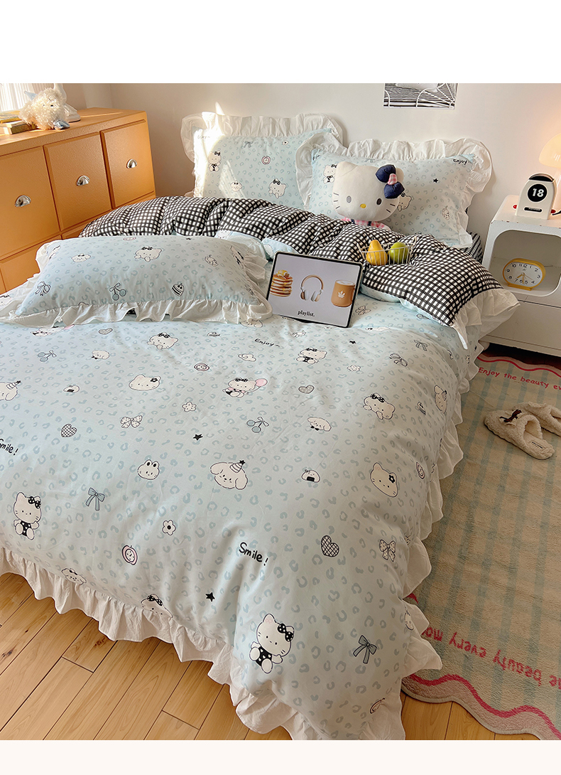 商品名称:六巷胡同 2026春夏新款韩系可爱风花边款卡通全棉四件套(第一系列) 花边海盐豹纹猫