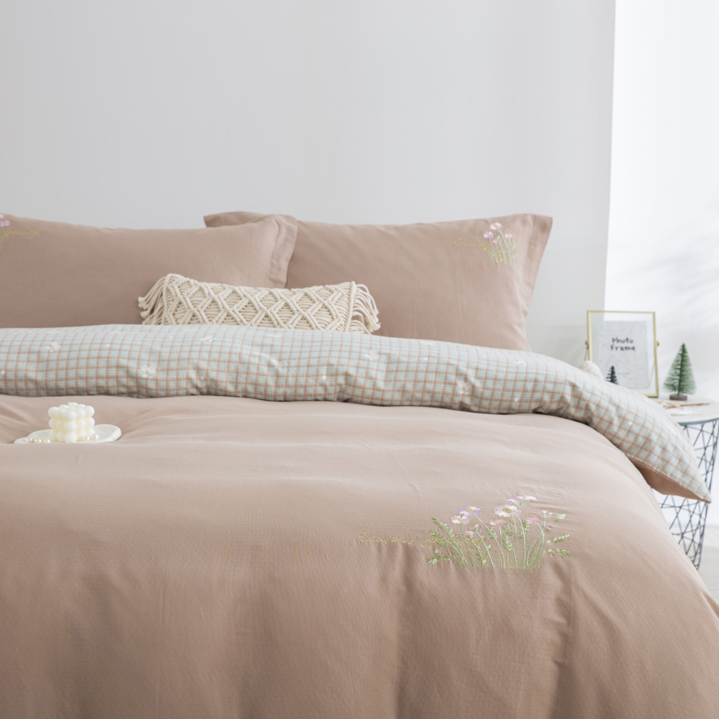 (总)仰望棉麻双层纱供应链 2026新款全棉色织提花四件套-太妃糖,太妃糖