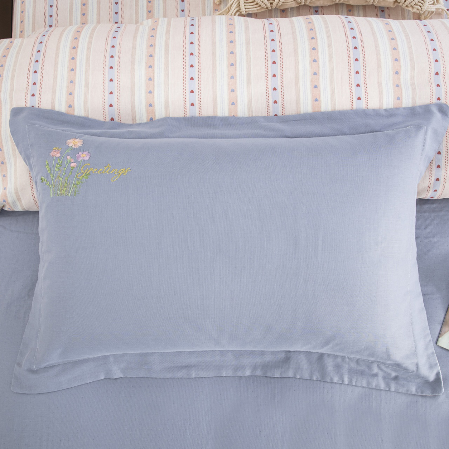 仰望棉麻双层纱供应链 2026新款全棉双层纱绣花绣花四件套-初语 初语-雾霾蓝