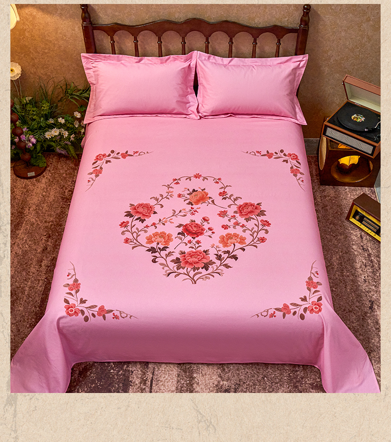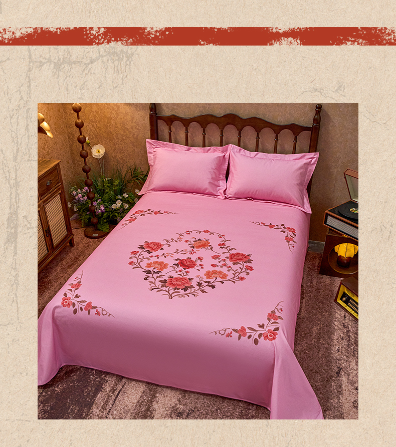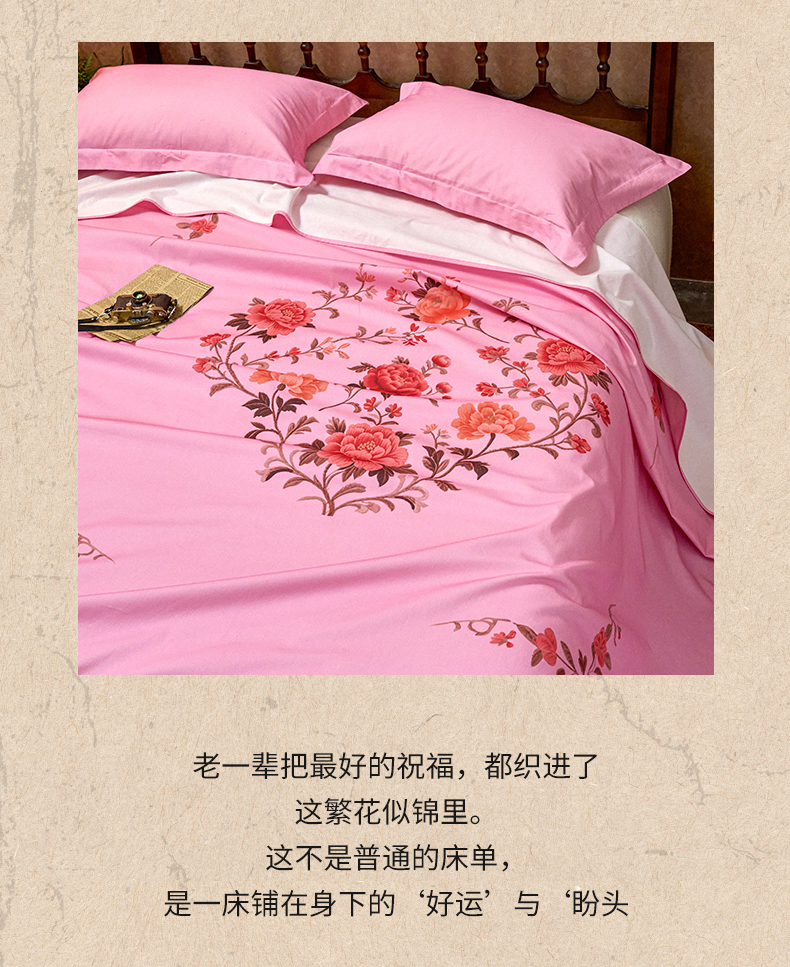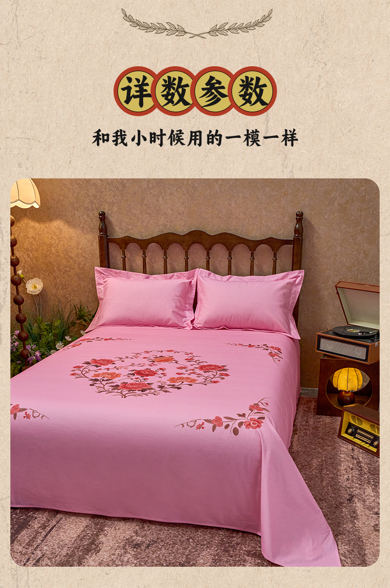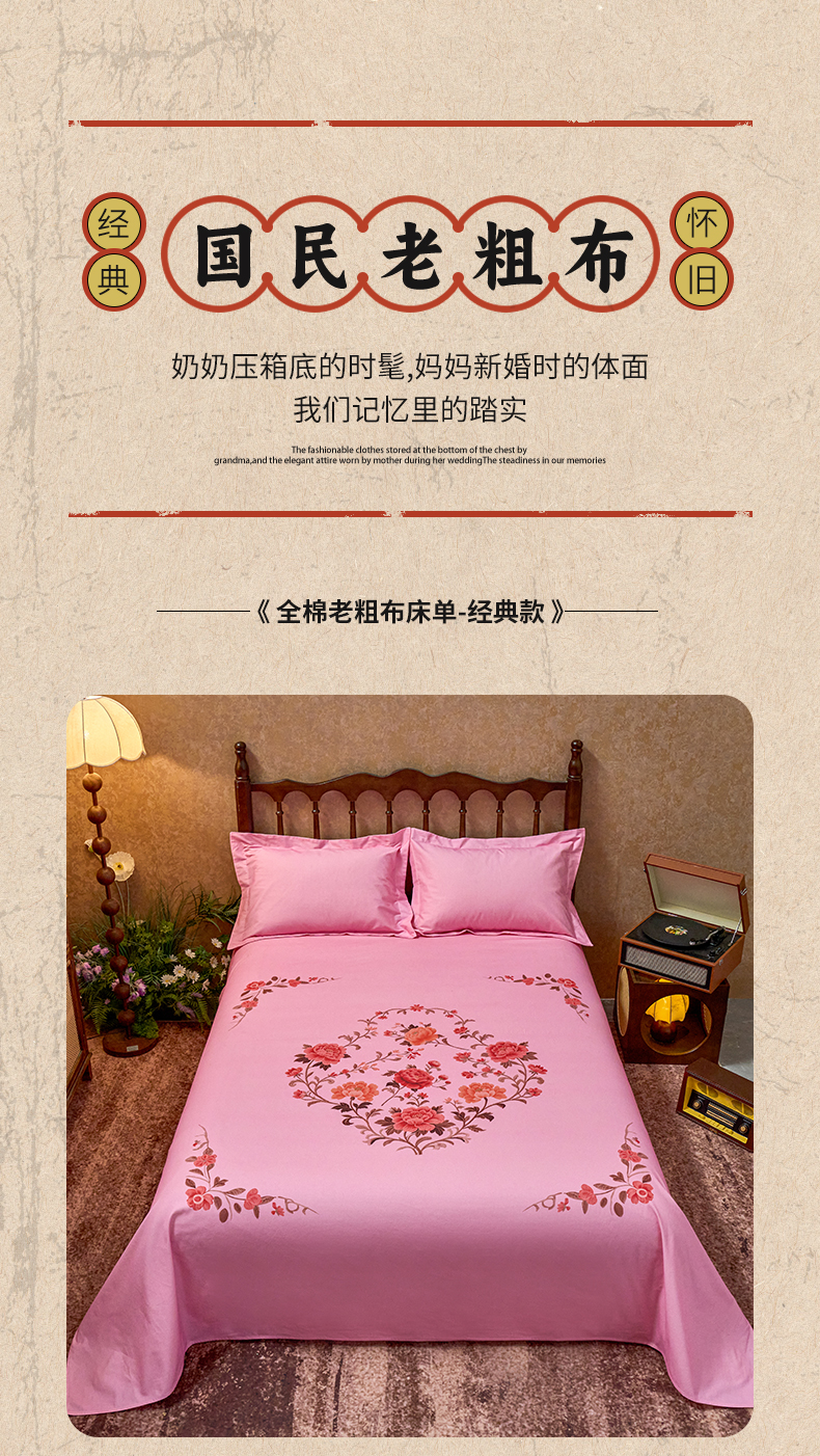 春皖家纺 2026新款老上海A类国民全棉老粗布床单怀旧经典粗布床单(提供买家秀) 锦花-玫红