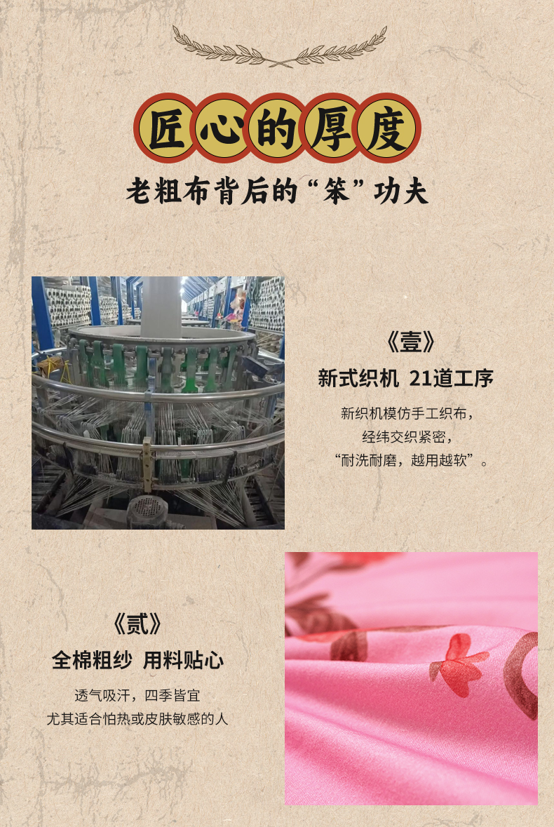 商品名称:春皖家纺 2026新款老上海A类国民全棉老粗布床单怀旧经典粗布床单(提供买家秀) 锦花-玫红