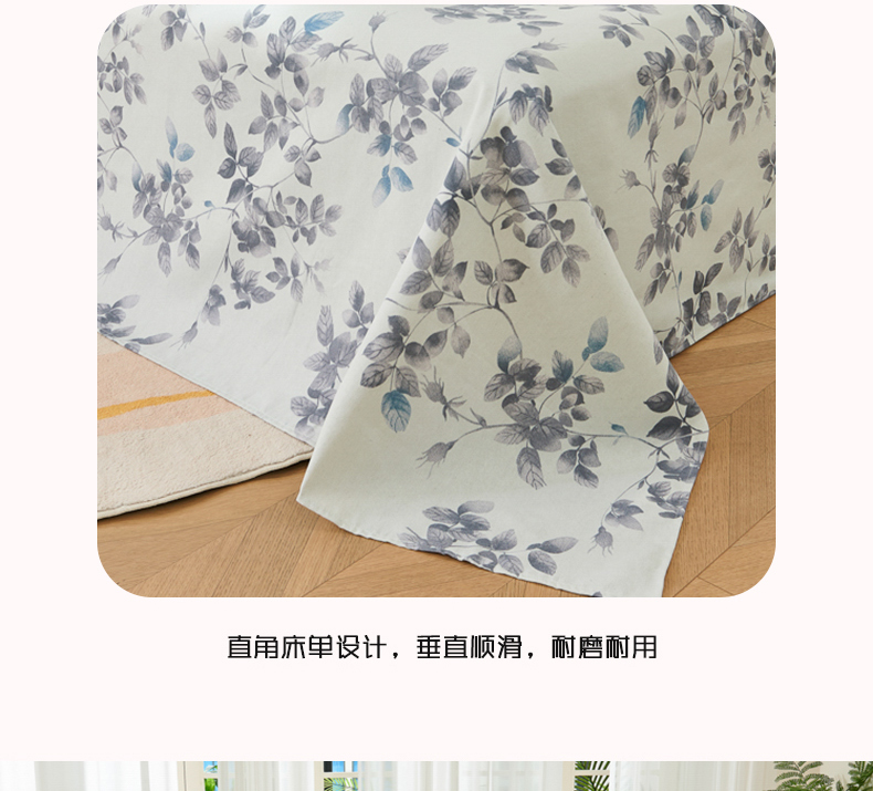• 91家纺网 家纺一手货源 找家纺 爱彼家纺 2026新款原棉老粗布烫画老粗布印花系列单床单凉席席子三件套 叶落缤纷