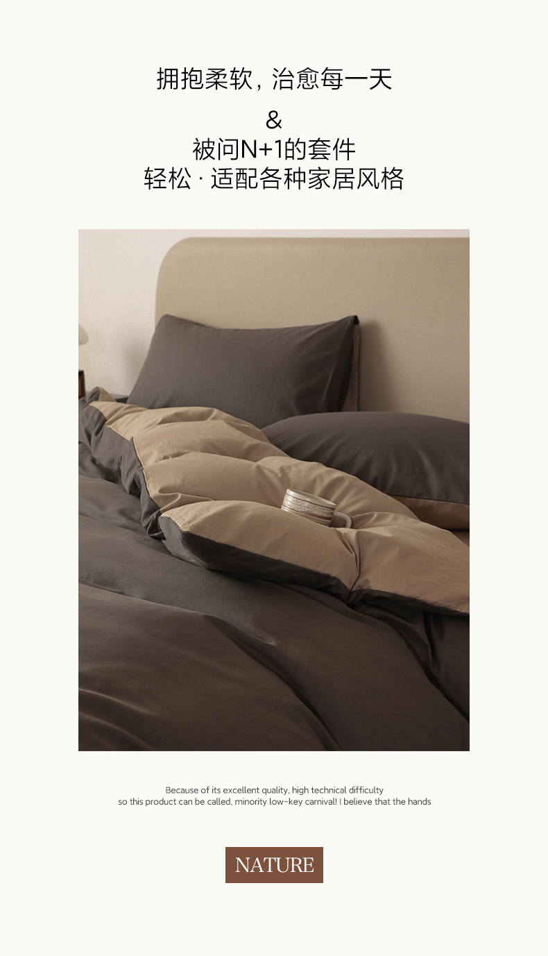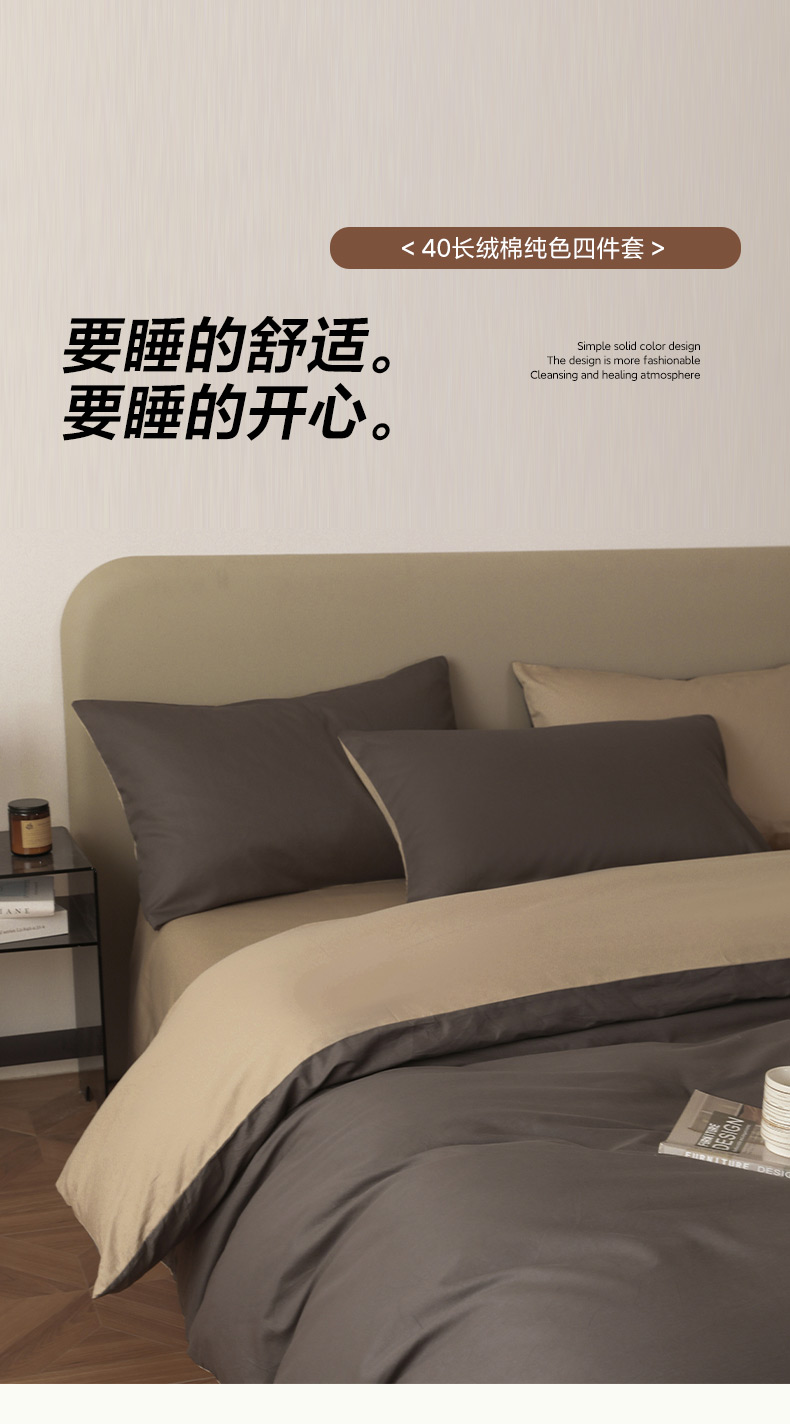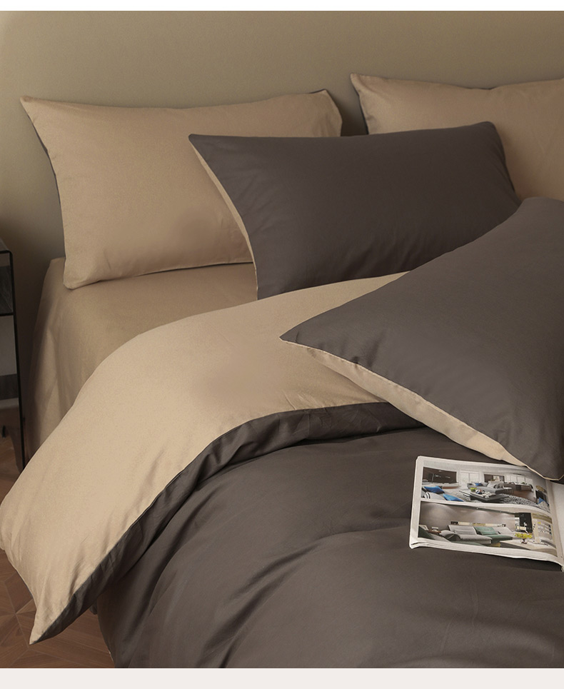 当前位置: 91家纺网 > 商品网购 > 床品套件 > 四件套 > 全棉普通四件套 > 盛馨家纺 2026新款40长绒棉ins美拉德色系纯色双拼全棉单品四件套单人纯色三件套 深麻灰+白茶