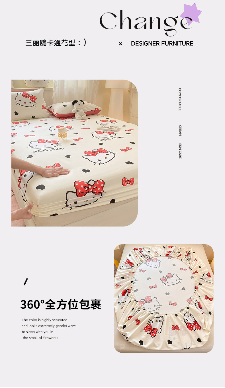 • 91家纺网 家纺一手货源 找家纺 博雅 2026新款三丽鸥全棉小版印花床笠 奶白kt