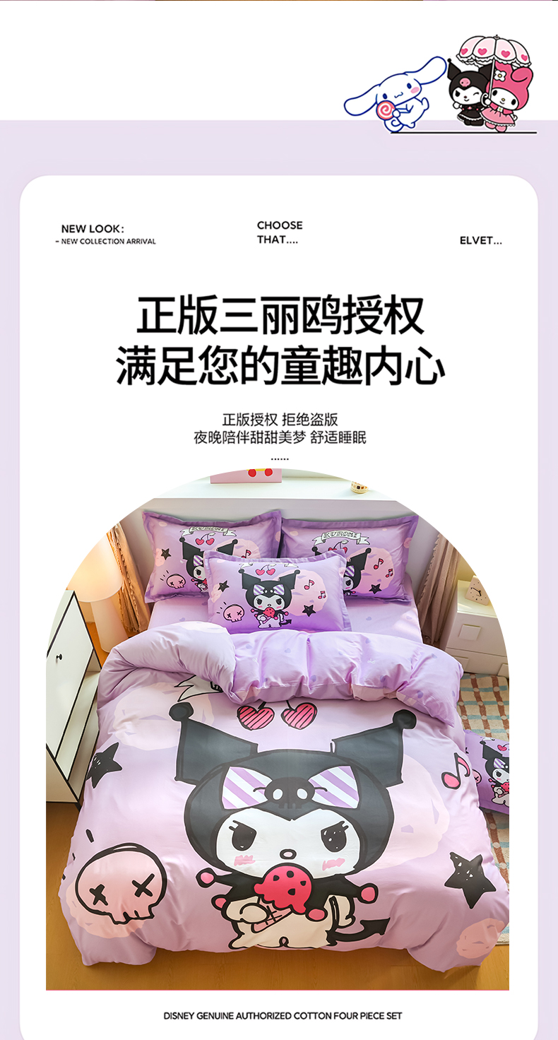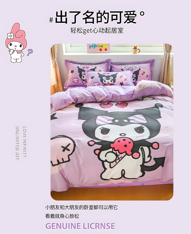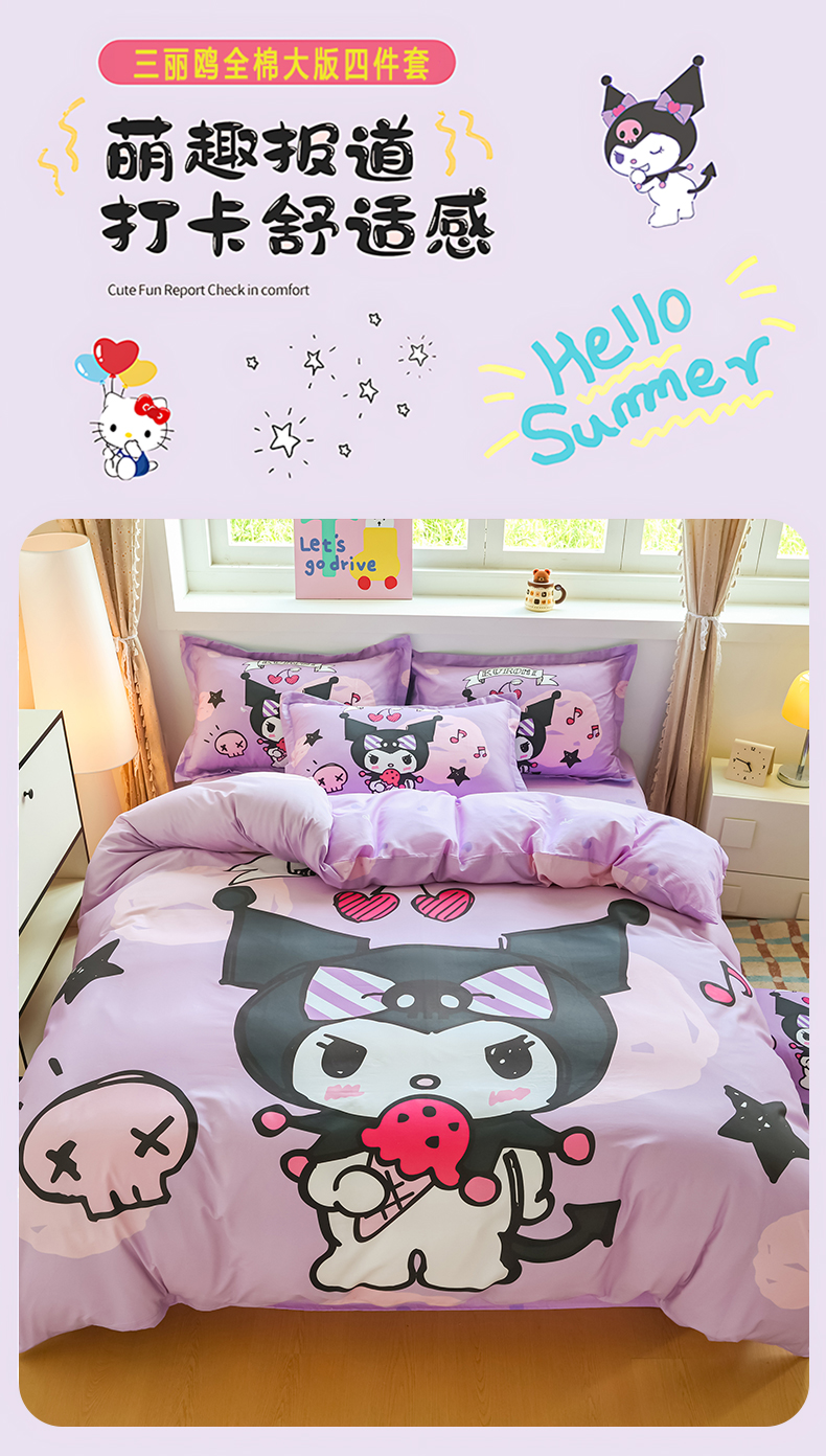 当前位置: 91家纺网 > 商品网购 > 床品套件 > 四件套 > 全棉普通四件套 > 浩诚 2026新款专版三丽鸥hellokitty库洛米正版授权大版全棉纯棉四件套 樱桃库洛米