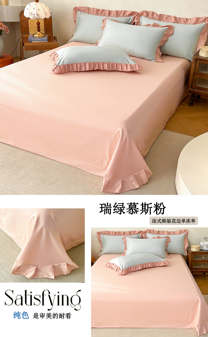 (总)艾迪尚家纺 2026法式韩版荷叶边纯色长绒棉纯棉单床单单品床单床单单件,薄荷青灰,冰川蓝香草白,茉绿奶芙,奶芙慕粉,青提絮语,柔杏浅绿,瑞绿慕斯粉,雾蓝杏语,云白芽绿,云灰仙女粉
