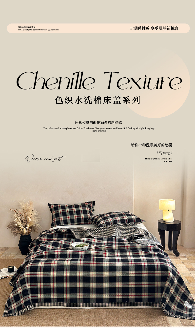 商品名称:法芙娜家纺 2026新款双面全棉色织水洗棉床盖 黑格