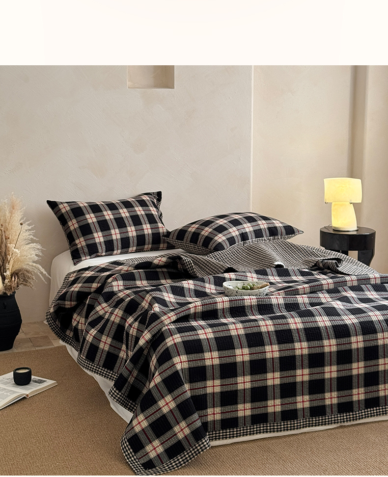 法芙娜家纺 2026新款双面全棉色织水洗棉床盖 黑格