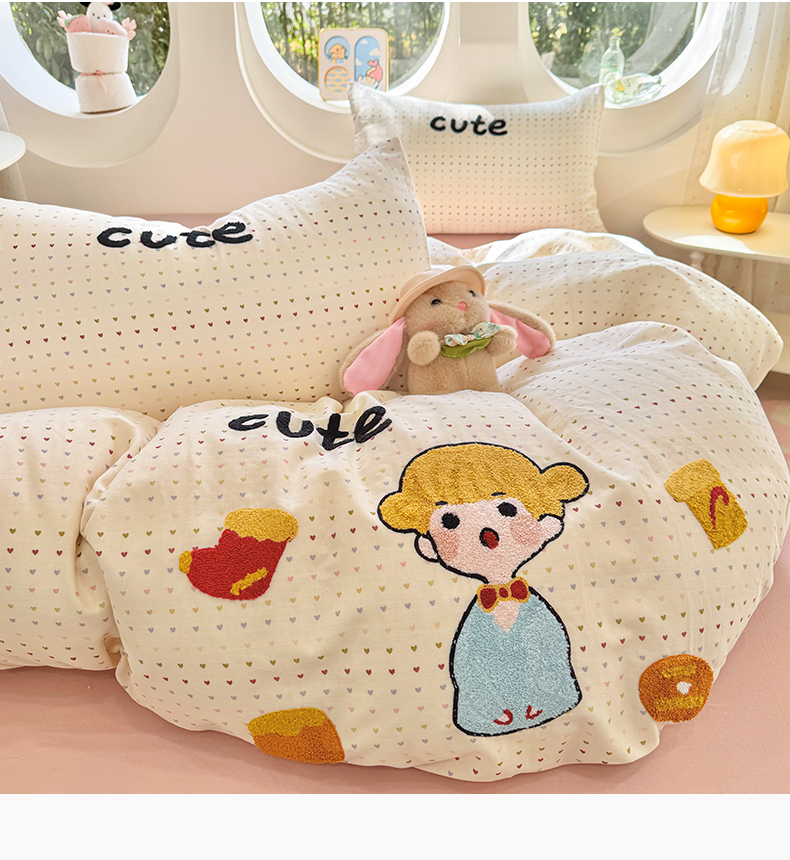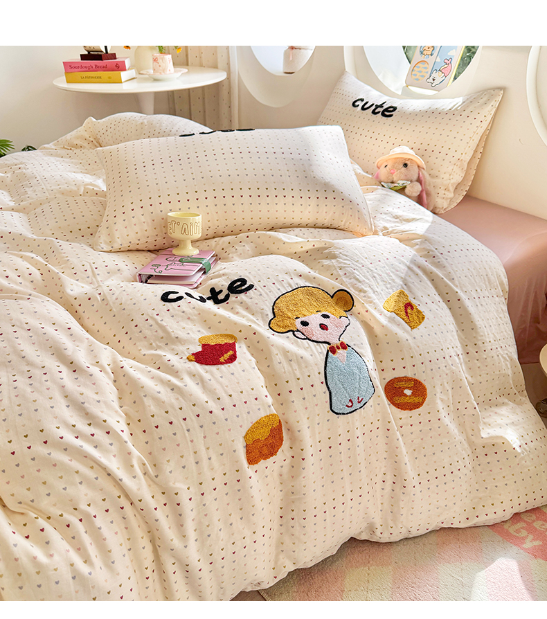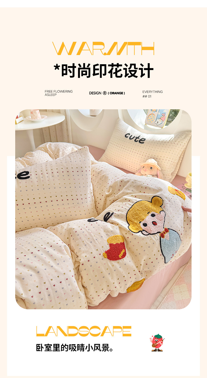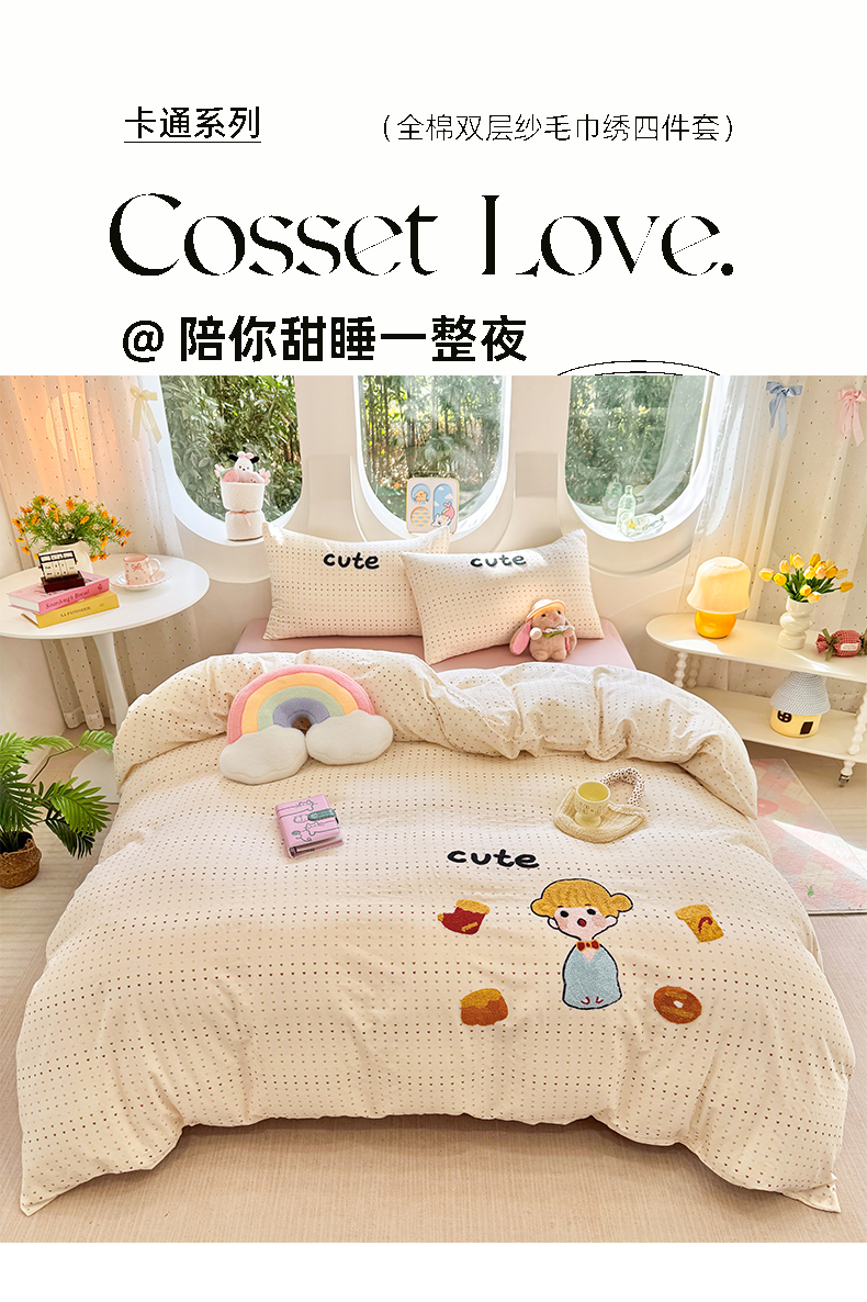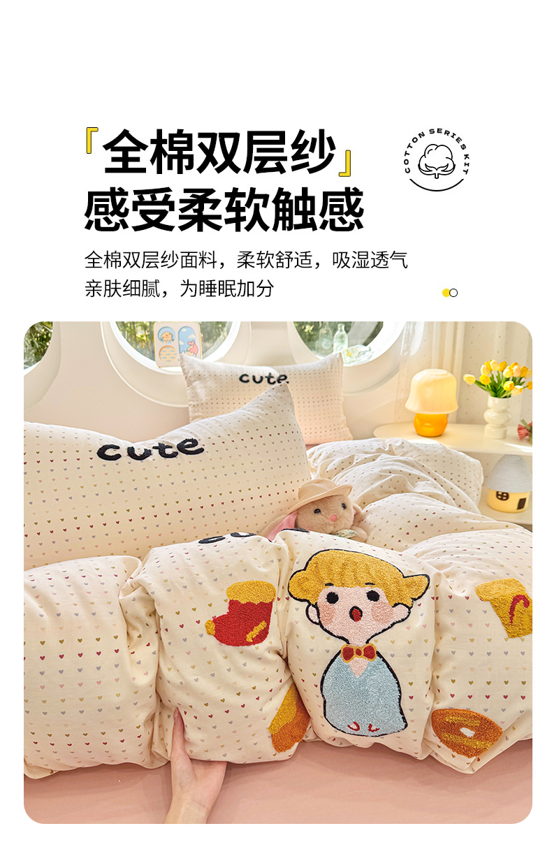 当前位置: 91家纺网 > 商品网购 > 床品套件 > 四件套 > 双层纱四件套 > 爱思佳 2026新款双层纱印+毛巾绣系列四件套 可爱女孩