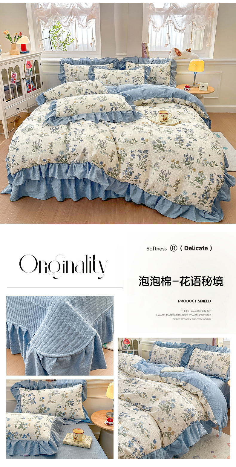 商品名称:安哆啦家纺 2026新款糯叽叽泡泡棉韩式花边床盖四件套 泡泡棉-花语秘境