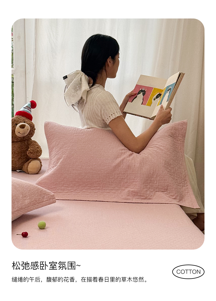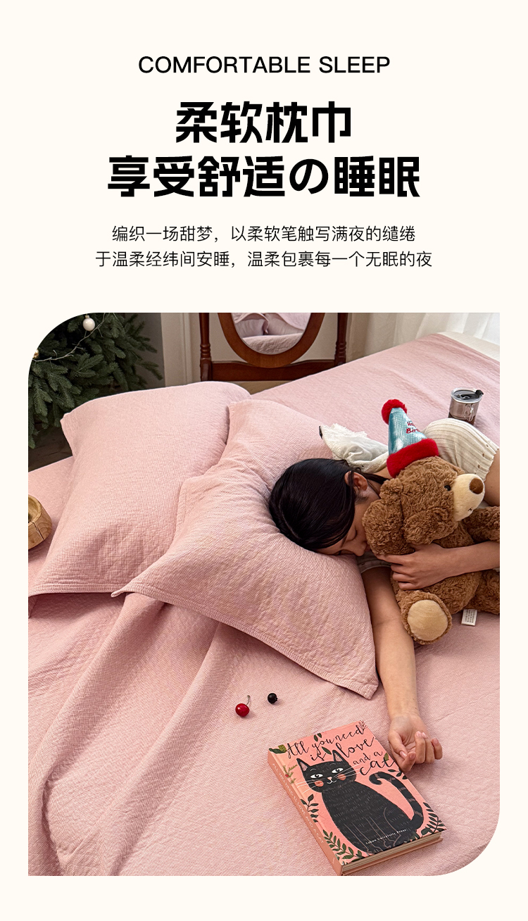 沐瑟家纺 2026新款纯棉四层纱布枕巾-素格和米格 米格-粉色