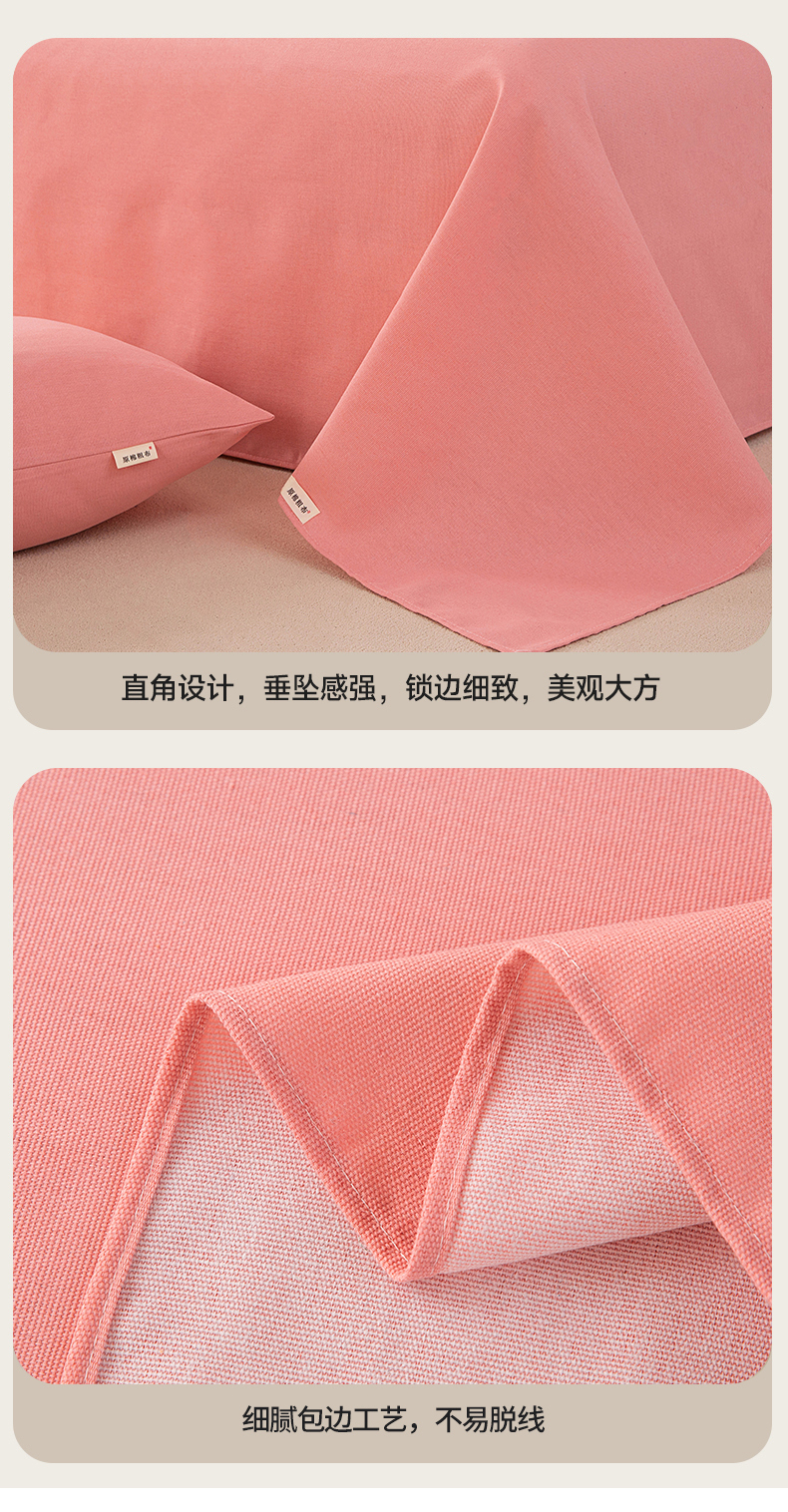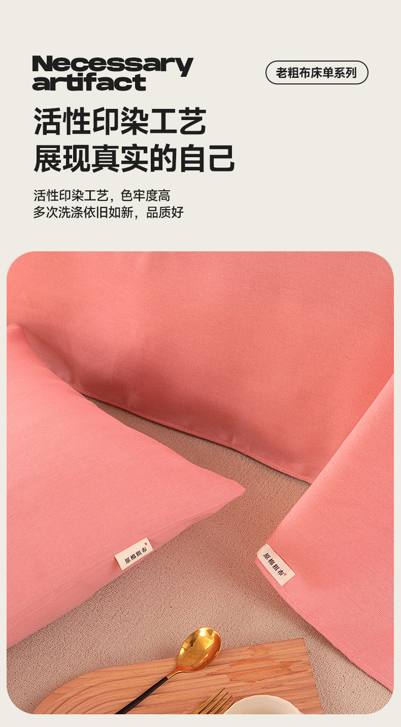 • 91家纺网 家纺一手货源 找家纺 棉乐町家居 2026新款原棉标印花老粗布床单 樱花粉