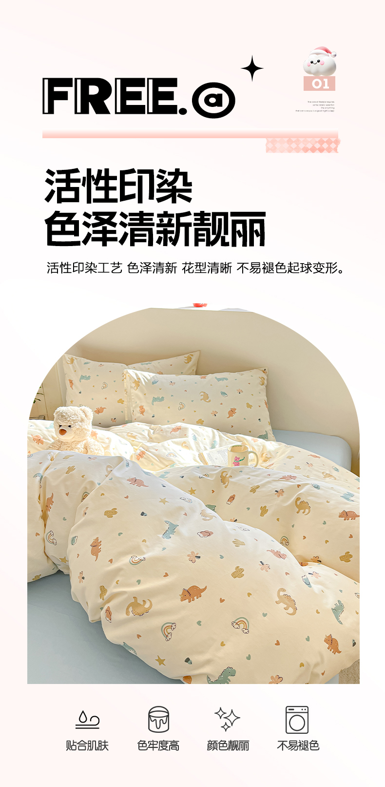 当前位置: 91家纺网 > 商品网购 > 床品套件 > 四件套 > 全棉普通四件套 > 吉象家纺 2026春夏新款全棉纯棉印花四件套 爱心小龙