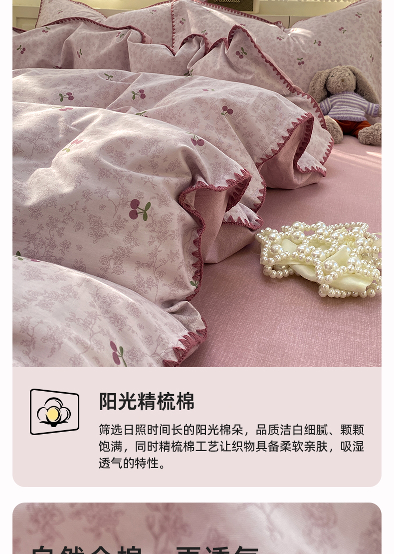 (总)浮光家居 2026新款全棉贝壳边纯棉单被套系列2,布歌紫,蝶恋花,爱丽花园,寻微,线韵时尚灰,机灵猫,星慕,夏日恋格黄,夏日恋格粉,夏日恋格兰,花边兔